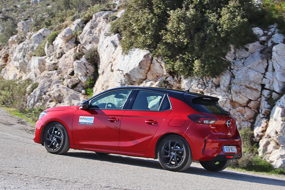 Αν ο οδηγός αποφασίσει να εξερευνήσει τις δυνατότητες πλαισίου, ανάρτησης και φρένων σε στροφές, θα έρθει αντιμέτωπος με ουδέτερες αντιδράσεις. Η ανάρτηση είναι μεν προσανατολισμένη στην άνεση, όμως δεν αφήνει το αμάξωμα να πάρει πολλές κλίσεις. Το μπροστινό ικανοποιεί σε απόκριση, αλλά το τιμόνι περνάει μια τεχνητή αίσθηση βάρους στα χέρια. Η πλατφόρμα CMP διακρίνεται για την ακαμψία που δίνει στο σασί, εξασφαλίζοντας στιβαρότητα στο πάτημα του Corsa. Η ισχύς του κινητήρα δεν προβληματίζει τους εμπρός τροχούς, καθώς για να προκύψει υποστροφή θα πρέπει να κλοτσήσεις το δεξί πεντάλ μέσα στη στροφή. Αυτή (η υποστροφή) είναι και η μοναδική αντίδραση που σε απασχολεί σε τυχόν απώλεια πρόσφυσης, καθώς η ουρά μένει καθηλωμένη σε κάθε περίπτωση, με το ESP να εξουδετερώνει επί τόπου όποια προσπάθεια αποσταθεροποίησης.