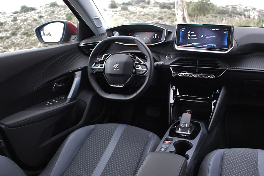 Ο ψηφιακός και τρισδιάστατος πίνακας οργάνων i-Cockpit κλέβει τις εντυπώσεις, με το χαρακτηριστικό «κομμένο» τιμόνι μικρής διαμέτρου κάτω από αυτόν, να συνεχίζει το ιδιαίτερο γνώρισμα των Peugeot. Όμως και σε αυτό το Peugeot η στεφάνη του τιμονιού κρύβει ένα μεγάλος μέρος των ενδείξεων του πίνακα οργάνων. Η οθόνη αφής των 10 ιντσών είναι ευκρινής και εύχρηστη, όμως και πάλι οι διακόπτες κάτω από αυτήν φτάνουν τους 13 (14 με αυτόν των αλάρμ). Γενικά πρόβλημα δεν θα αντιμετωπίσει ο οδηγός με την εργονομία των χειριστηρίων ή τη θέση οδήγησης, όμως αμφότερα προϋποθέτουν ένα σύντομο διάστημα εξοικείωσης. Τα πλαστικά είναι πολύ καλής ποιότητας στο πάνω μέρος του ταμπλό, ενώ και οι επενδύσεις είναι προσεγμένες, όπως και η συναρμογή ακόμα και στα σκληρά μέρη της κεντρικής κονσόλας. Ο χώρος αποσκευών, τέλος, βρίσκεται στα 405 λίτρα (434 με κιτ επισκευής) και αποσπά καλή βαθμολογία, διαθέτοντας διπλό δάπεδο.