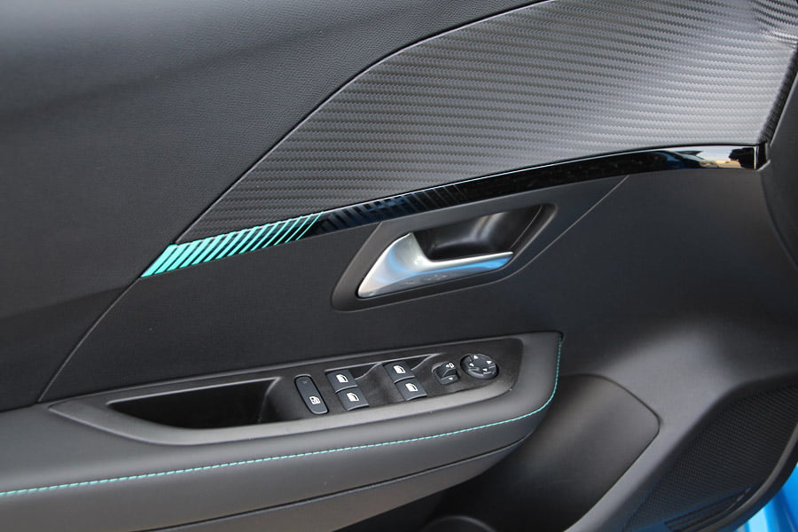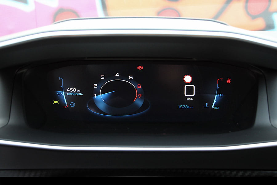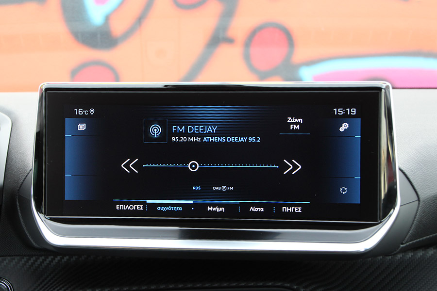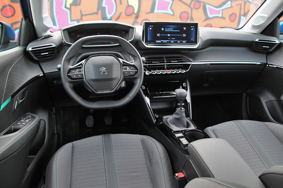 Ο φουτουριστικός πίνακας οργάνων με το πλαίσιο που προεκτείνεται προς τα έξω και τα ανοίγματα στα πλαϊνά του παραμετροποιείται και προβάλλονται οι πληροφορίες που θέλει ο οδηγός. Όμως, οι ενδείξεις του κρύβονται από την στεφάνη του τιμονιού και για να γίνουν πλήρως ορατές, θα πρέπει ο οδηγός να τοποθετήσει ψηλά το κάθισμα και χαμηλά το τιμόνι. Στη βάση της κεντρικής κονσόλας βρίσκονται οι διακόπτες αεροπορικού τύπου και πίσω από αυτούς χειριστήρια αφής για τις βασικές λειτουργίες του αυτοκινήτου (ραδιόφωνο, κλιματισμός, πλοήγηση, ρυθμίσεις κ.α.). Στο κατώτερο τμήμα του ταμπλό υπάρχουν διάφορες πρακτικές θήκες για μικροαντικείμενα, θύρες USB, βάση για ασύρματη φόρτιση και δύο ποτηροθήκες (μία ρηχή και μία βαθιά), ανάμεσα από τα εμπρός καθίσματα. Ποιοτικά, το εσωτερικό του νέου 208 είναι πολύ προσεγμένο σε υλικά και φινίρισμα. Όλα τα πλαστικά τμήματα στο ταμπλό είναι μαλακά στην υφή, ενώ το κεντρικό τμήμα είναι διακοσμημένο με επένδυση τύπου ανθρακονήματος. Επιπλέον, τα διακοσμητικά μαύρης λάκας πιάνου και τα νίκελ φιλέτα, χαρίζουν στην καμπίνα μια πολυτελή νότα.