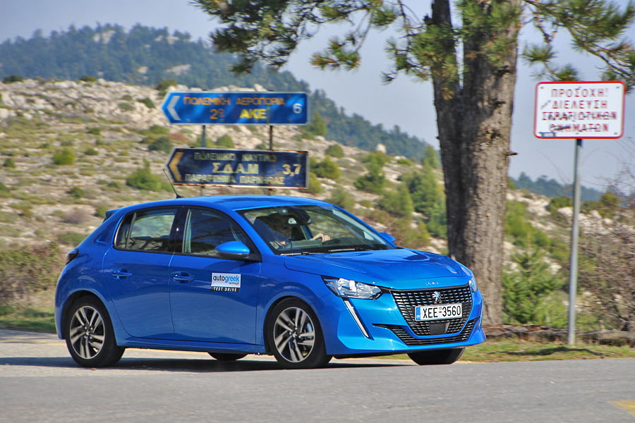 Η πολύ καλή δουλειά που έχει γίνει στο πλαίσιο και στο «στήσιμο» των αναρτήσεων φαίνεται και εκτός πόλεως. Στον αυτοκινητόδρομο κινείται ευθύβολα, δίχως να δημιουργεί τάσεις ανασφάλειας, ακόμα και σε αρκετά γρήγορους ρυθμούς. Απολαυστικό είναι και σε διαδρομές με στροφές, όπου ακολουθεί ευλαβικά τις εντολές του οδηγού. Οι κλίσεις του αμαξώματος είναι μικρές και τα περιθώρια πρόσφυσης πολύ αυξημένα. Το 208 στρίβει σε εσάκια και φουρκέτες με χαρακτηριστική ευκολία, δίχως να παρεκκλίνει από την προεπιλεγμένη τροχιά. Ο οδηγός το τοποθετεί εκεί που θέλει και το αυτοκίνητο ακολουθεί την χαραγμένη πορεία. Μόνο εφόσον το παρακάνει, μπαίνει το ESP και κόβει το ρυθμό. Σε ορισμένες συνθήκες εξαντλείται γρήγορα η ισχύς του κινητήρα, λόγω των δυνατοτήτων του αυτοκινήτου. Παράλληλα, το τιμόνι είναι ακριβές, έχει καλή αμεσότητα και τα φρένα με τους δίσκους σε όλους τους τροχούς είναι δυνατά και αντέχουν στην συνεχόμενη καταπόνηση.