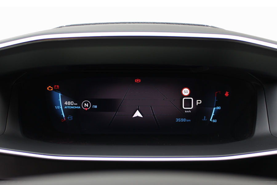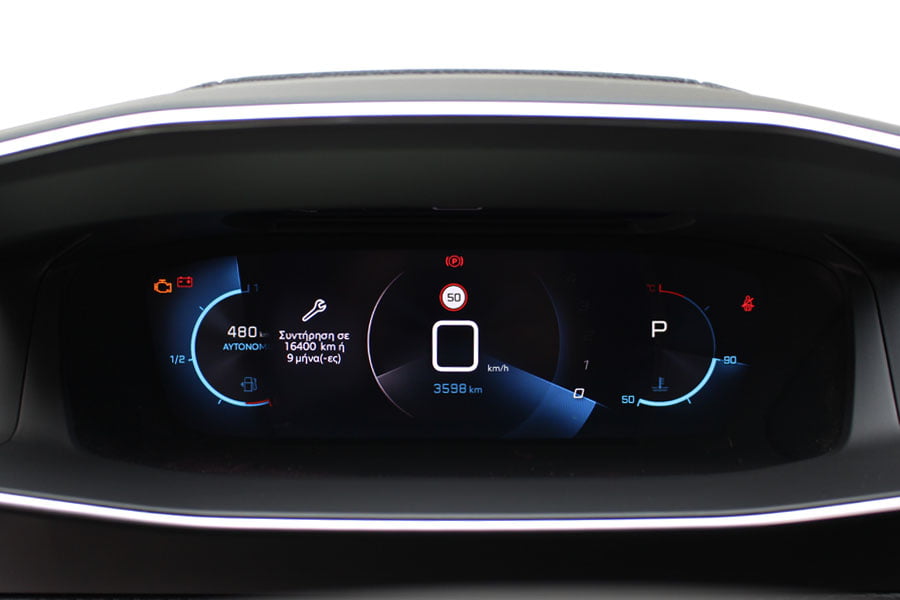 Κατά τα άλλα, το τρισδιάστατο ψηφιακό καντράν 3D i-Cockpit συνεχίζει να κρύβεται κατά μεγάλο μέρος από το τιμόνι, η θέση οδήγησης θα πρέπει να προσαρμόζεται ανάλογα (ψηλά το κάθισμα, χαμηλά το τιμόνι για να βλέπεις πλήρως τον πίνακα οργάνων), τα υλικά και η συναρμογή είναι εξαιρετικά, οι χώροι για τους πίσω μέτριοι, αυτοί για τις αποσκευές το ίδιο (265 ή 309 λίτρα με κιτ επισκευής) και το άνοιγμα των πίσω θυρών περιορισμένο.