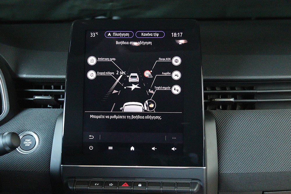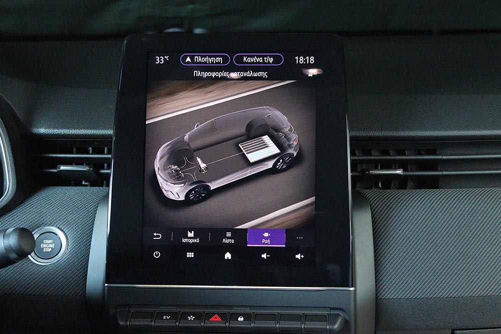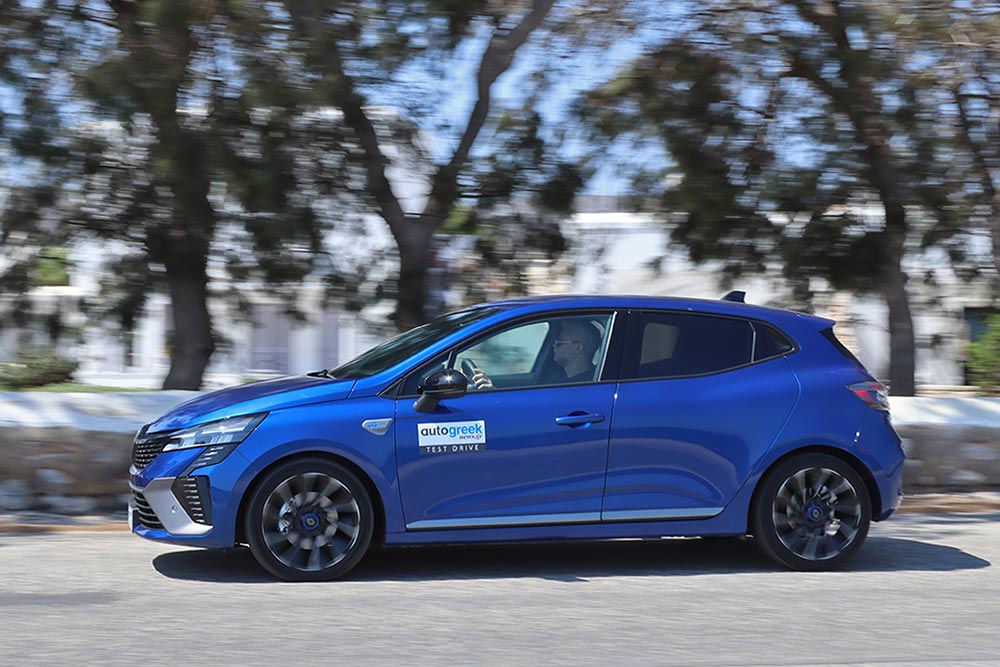 Εκτός από όλες αυτές τις λεπτομέρειες, το εσωτερικό του Clio ξεχωρίζει και για την κορυφαία -για supermini και όχι μόνο- ποιότητα κατασκευής. Μαλακά σε υφή υλικά έχουν χρησιμοποιηθεί στο μεγαλύτερο μέρος του ταμπλό, της κεντρικής κονσόλας και στις επενδύσεις των εμπρός θυρών, με το φινίρισμα και τη συναρμογή να είναι ανωτέρου επιπέδου. Πρόσθετα ο ψηφιακός πίνακας οργάνων των 7 ιντσών (προαιρετικά 10 ιντσών) και το infotainment των 7 ή 9,3 ιντσών τονίζουν τη σύγχρονη τεχνολογία του αυτοκινήτου. Η ροή ενέργειας στον πίνακα οργάνων φαίνεται από μία μικρή ένδειξη, ενώ στην οθόνη αφής υπάρχει και ξεχωριστή ενότητα με διάφορες πληροφορίες για το υβριδικό σύστημα κίνησης. Όσο για τους χώρους, όλοι οι επιβάτες του Clio θα μετακινηθούν δίχως παραχωρήσεις, ακόμα και όταν πρόκειται για πιο ψηλούς, μιας και στο πίσω κάθισμα ο αέρας για τα πόδια και το κεφάλι είναι αρκετός. Στο E-Tech το πορτ μπαγκάζ είναι μικρότερο κατά 90 λίτρα (από το LPG) και φτάνει τα 301 λίτρα, λόγω της τοποθέτησης των μπαταριών κάτω από το κάθισμα.