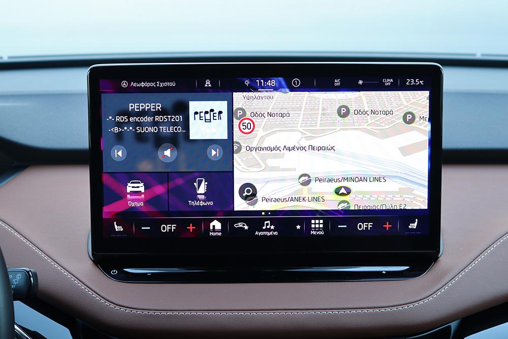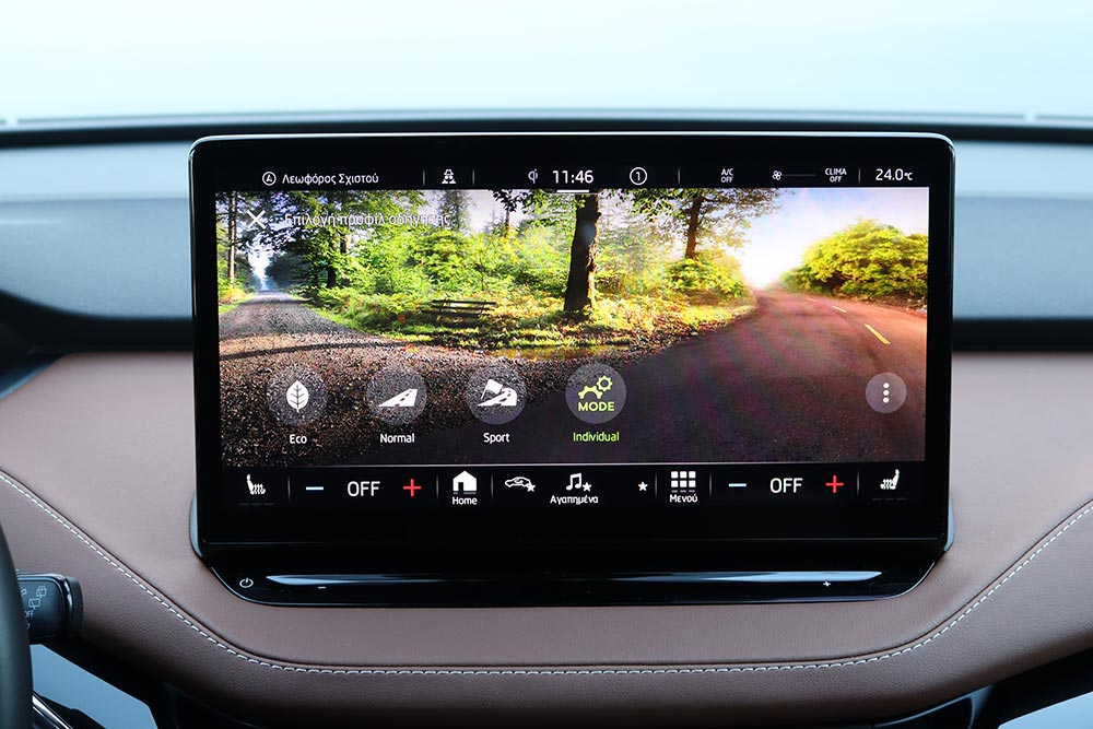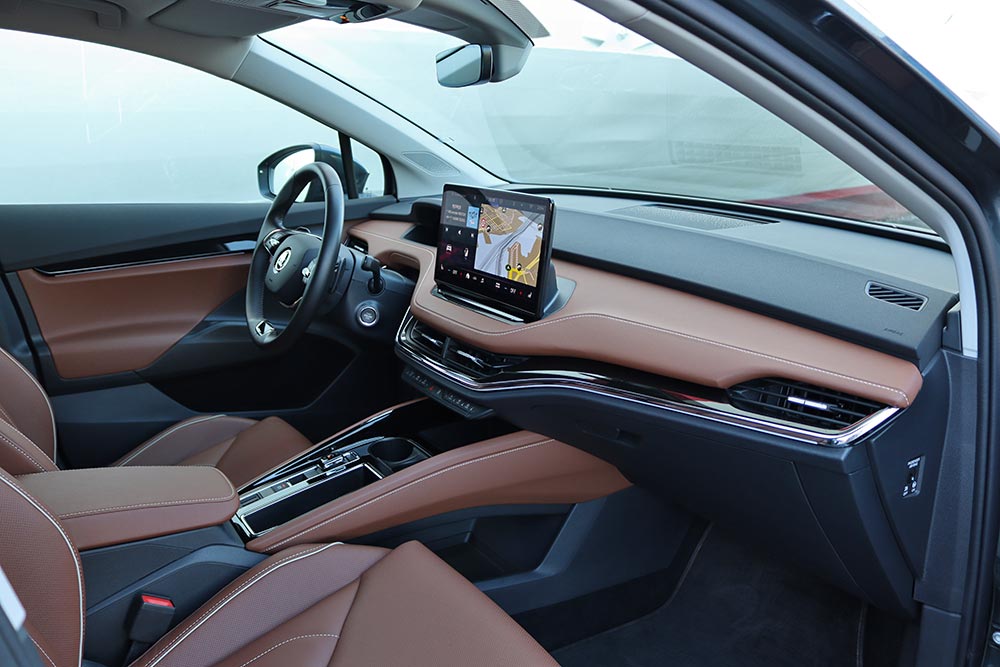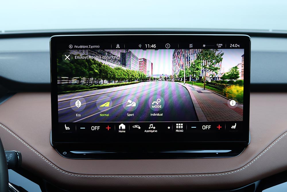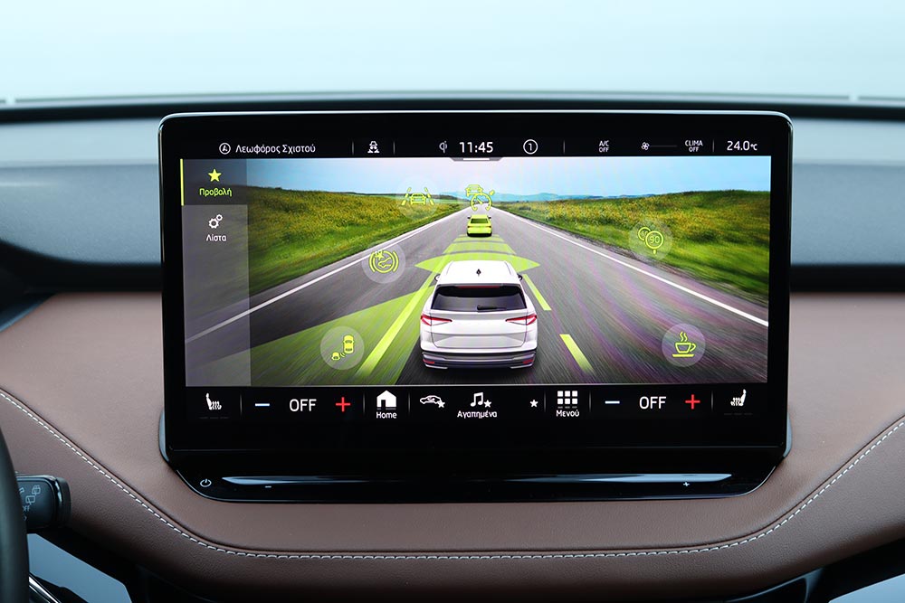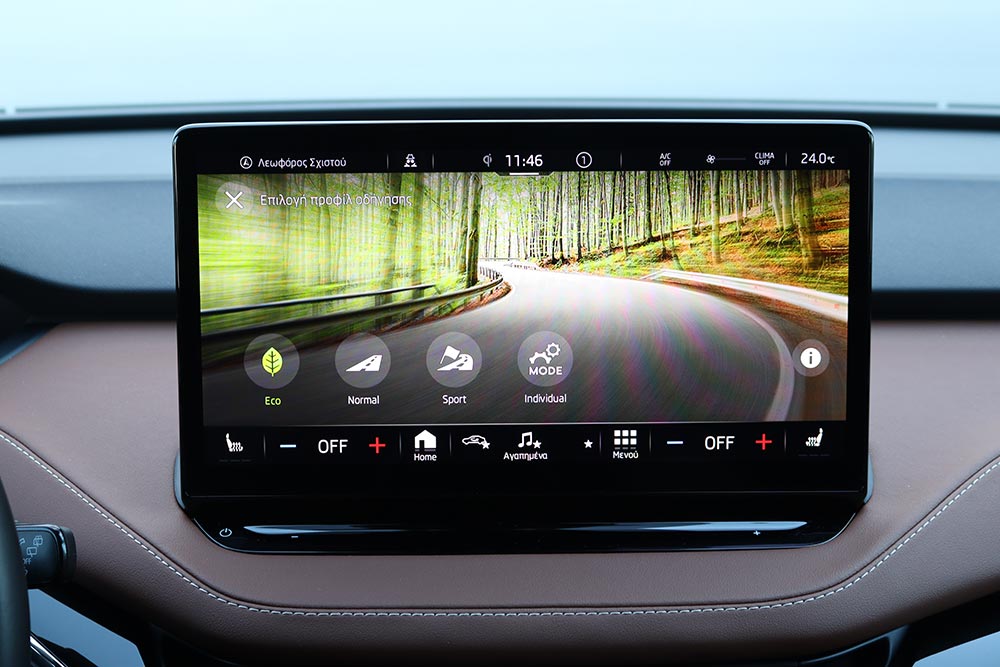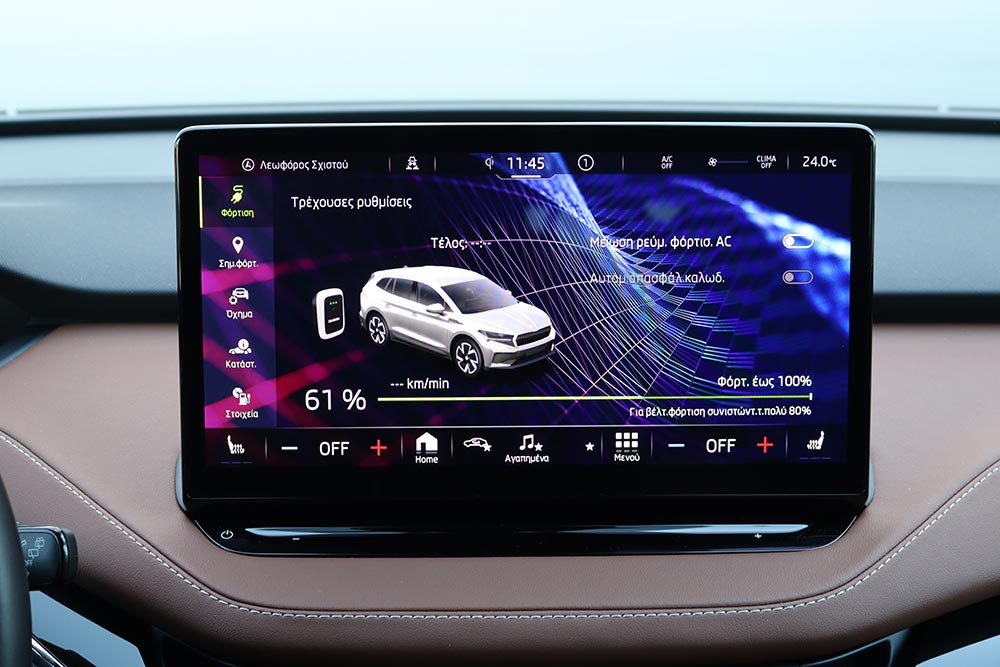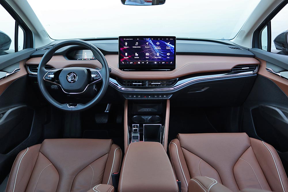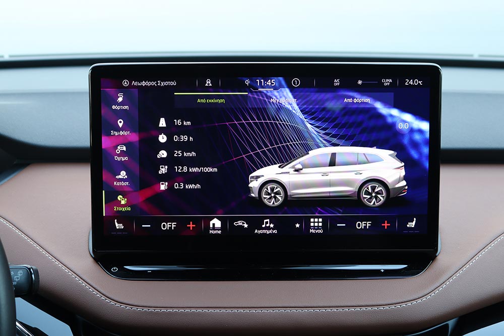 Σε κάθε περίπτωση πάντως, η κατανάλωση διατηρείται εντυπωσιακά χαμηλά – ιδίως σε αντιδιαστολή με το μέγεθος του αυτοκινήτου. Η μέση τιμή κατά τη διάρκεια της δοκιμής περιορίστηκε στις 16,3 kWh, ενώ ακόμα και με τέρμα γκάζι δεν ξεπέρασε τις 19,4 kWh (η μέση, όχι η στιγμιαία). H Skoda ανακοινώνει μέγιστη αυτονομία 412 χλμ., αλλά ούτως ή άλλως κανένα ηλεκτρικό δεν εκπληρώνει τα εργοστασιακά νούμερα. Μια τιμή στα 350 χλμ. είναι σαφώς πιο ρεαλιστική.