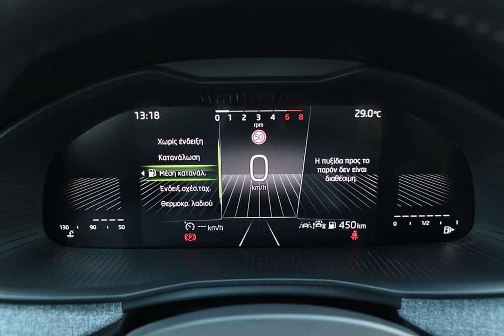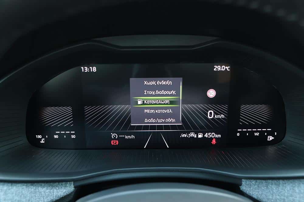 Μπαίνοντας στην καμπίνα το πρώτο πράγμα που παρατηρούμε είναι η νέα στεφάνη στο τιμόνι που «έχασε» μια ακτίνα (από 3 ακτίνες) και ο νέος πίνακας οργάνων Virtual Cockpit 8 ιντσών (προαιρετικά 10,25 ίντσες) που πλέον είναι ψηφιακός σε όλες τις εκδόσεις. Στο κέντρο έχει τοποθετηθεί έγχρωμη οθόνη αφής 8,25 ιντσών (9,25 ιντσών στον προαιρετικό εξοπλισμό) του συστήματος πολυμέσων με ασύρματη σύνδεση Apple Car Play και Android Auto. Θα συναντήσουμε ανάλογα την έκδοση έως και τέσσερις θύρες (2 εμπρός/2 πίσω) USB-C ισχύος 45 Watt για τη φόρτιση smartphone ή tablet. Οι νέες ταπετσαρίες, τα διακοσμητικά τελειώματα, οι μοκέτες και τα πατάκια δαπέδου είναι κατασκευασμένα από ανακυκλωμένα υλικά. Χρησιμοποιούνται επίσης φυσικές, ανανεώσιμες πρώτες ύλες για παράδειγμα στα πάνελ της πόρτας καθώς και τη δομική ενίσχυση της επένδυσης. Ολόκληρο το πάνω μέρος του ταμπλό και των εμπρός θυρών είναι κατασκευασμένα από μαλακό υλικό, ενώ το φινίρισμα είναι πολύ προσεγμένο και η συναρμογή είναι στιβαρή.