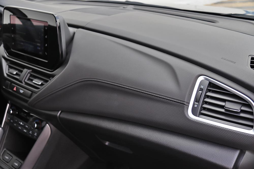 Στο εσωτερικό το ταμπλό χαρακτηρίζεται από την τοποθέτηση της νέας οθόνης αφής στην κορυφή και πάνω από τους αεραγωγούς, μετρώντας 9 ίντσες (αποκλειστικό προνόμιο του GLX, 7 ίντσες οι άλλες δυο εκδόσεις) και διαθέτοντας στο σύστημα πολυμέσων όλες τις καθιερωμένες λειτουργίες συνδεσιμότητας (Apple CarPlay, Android Auto και Bluetooth). Τα υλικά εμφανίζονται καλύτερα τόσο σε ποιότητα, όσο και όψη/αφή. Ιδίως το μαλακό πλαστικό που συναντάται μπροστά από το συνοδηγό, ανεβάζει επίπεδο και το διάκοσμο.