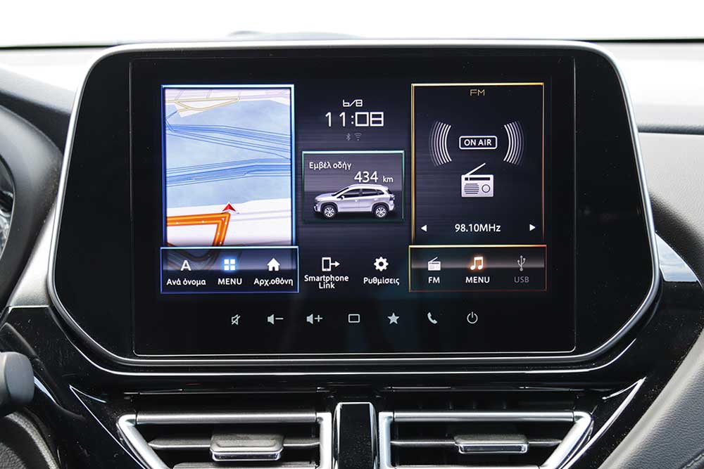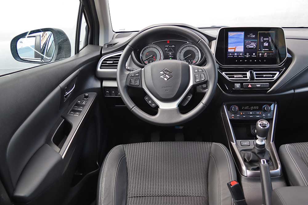 Η συναρμογή διατηρείται σε κορυφαίο επίπεδο, όπως και η εργονομία. Μοναδικό μειονέκτημα και στοιχείο που κάνει τις άλλες δυο εκδόσεις S-Cross να υπερηφανεύονται έναντι της κορυφαίας, η χρηστικότητα της οθόνης. Του συστήματος πολυμέσων, για την ακρίβεια, το οποίο κερδίζει μεν σε γραφικά και αισθητική, αλλά χάνει ξεκάθαρα σε ευκολία χρήσης έναντι εκείνου με τις 7 ίντσες. Εδώ χρειάζεται αρκετή περιήγηση σε υπομενού, παρότι το λογισμικό είναι το ίδιο και στις δυο περιπτώσεις, ενώ αυτό που πραγματικά σε ενοχλεί είναι η έλλειψη χειροκίνητης ρύθμισης του ραδιοφώνου. Όσον αφορά τους χώρους, τέσσερις και πέντε, αναλόγως αναστήματος, επιβάτες θα βολευτούν, με το πορτ μπαγκάζ να αριθμεί 430 λίτρα και να φτάνει μέχρι τα 1.230 λίτρα όταν αναδιπλωθεί η διαιρούμενη (60/40) πλάτη του πίσω καθίσματος.