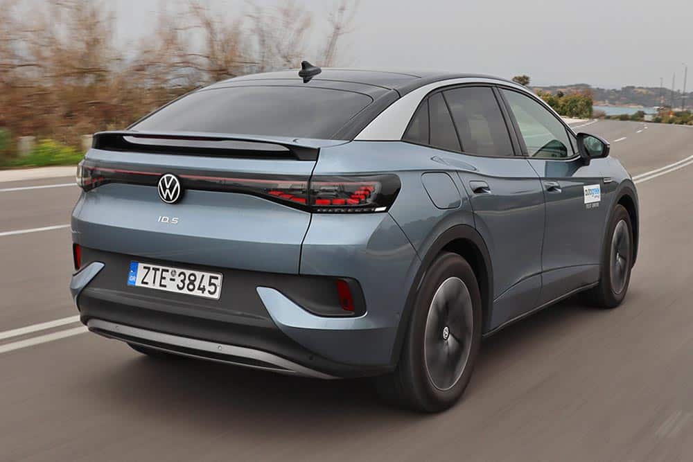 Σε κλειστές στροφές θα νιώσεις τα 2.118 κιλά, ενώ θα πρέπει να είναι πάντα ενεργοποιημένο το Sport πρόγραμμα για να έχεις βάρος στο τιμόνι, όμως σε γενικές γραμμές το ID.5 στρίβει όπως έρχεται. Όταν χρειάζεται να φρενάρει η δύναμη υπάρχει, αλλά το πεντάλ παρουσιάζει τη γνώριμη σπογγώδη ανταπόκριση που ξέρουμε από το ID.4. Επίσης από το 4άρι EV της «ΦαουΒε» προέρχονται τα ταμπούρα στον πίσω άξονα, που δείχνουν -και είναι- παράταιρα σε ένα τόσο ελκυστικό σχεδιαστικά πακέτο.