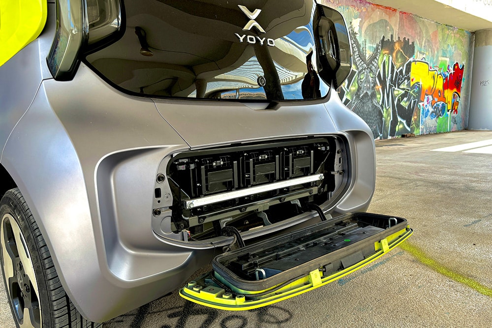 Οφείλουμε να πούμε ότι το Yoyo αυτή τη στιγμή είναι κατάλληλη επιλογή για καθημερινή χρήση εντός πόλης. Με πραγματική αυτονομία 100 χλμ. (στα χαρτιά 150 χλμ.) και συνολικό χρόνο φόρτισης σε οικιακή πρίζα τις 5 ώρες, θα καλύψει άνετα τις μετακινήσεις σας. Αν αναλογιστούμε δε ότι το κόστος για μια πλήρη φόρτιση ανέρχεται περίπου στα 2.5 ευρώ, τότε εκτιμούμε αμέσως την αξία του. Οι 3 μπαταρίες συνολικής χωρητικότητας 10,4 KWh βρίσκονται στο πίσω μέρος και είναι ορατές με το πάτημα ενός κουμπιού. Ο λόγος που υπάρχει πρόσβαση σε αυτές, ακούει στο όνομα battery swapping. Η XEV πρόκειται να τοποθετήσει σταθμούς battery swap σε όλη την Ιταλία και αργότερα σε άλλες χώρες, με σκοπό ο κάθε χρήστης απλώς να τις «ανταλλάζει» και να μην περιμένει για την επαναφόρτισή τους! Ενδιαφέρουσα προσέγγιση, αναμένουμε να πραγματοποιηθεί.