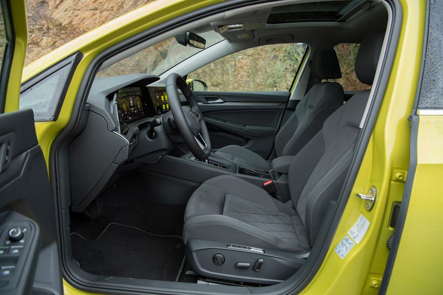 Αντιθέτως με το αμάξωμα, το εσωτερικό του νέου VW Golf δεν έχει καμία ομοιότητα με εκείνο του προγενέστερου και είναι πλήρως ψηφιοποιημένο. Στο βασικό εξοπλισμό ανήκει ένας ενοποιημένος πίνακας ελέγχου, ο οποίος περιλαμβάνει τα ψηφιακά όργανα (Digital Cockpit) με οθόνη 10 ιντσών, το επίσης στάνταρ σύστημα Infotainment Composition (οθόνη αφής 8,25 ιντσών) και ένα πολυλειτουργικό τιμόνι. Ακόμα και το κλασικό περιστροφικό χειριστήριο για το άναμμα των φώτων έχει αντικατασταθεί από ένα πάνελ με διακόπτες αφής. Τη μινιμάλ αισθητική ακολουθεί και η κεντρική κονσόλα ιδιαίτερα με το DSG κιβώτιο, το οποίο διαθέτει σημαντικά μικρότερο λεβιέ τεχνολογίας shft-by-wire.
