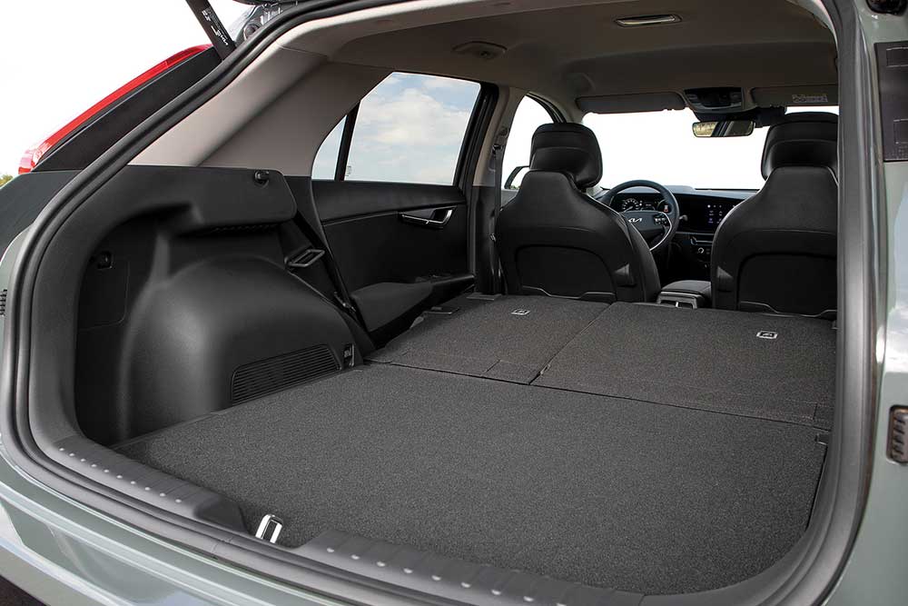 Η προσοχή που έχει δοθεί στην κατασκευή του εσωτερικού γίνεται αντιληπτή και από την ποιότητα, μέσω της χρήσης μαλακών υλικών, με ιδιαίτερα στιβαρή συναρμογή και σωστές ενώσεις. Στα θετικά γνωρίσματα του νέου μικρομεσαίου SUV της Kia ανήκουν και οι πολύ άνετοι χώροι όλους τους επιβάτες και τις αποσκευές. H χωρητικότητα του πορτ μπαγκάζ διαφοροποιείται ανάλογα τον κινητήρα. Το HEV έχει 451 λτ., το PHEV 348 λτ. και το EV 475 λτ., συν 20 ακόμα λίτρα κάτω από το εμπρός καπό, όπου μπορούν για παράδειγμα να τοποθετηθούν τα καλώδια φόρτισης.