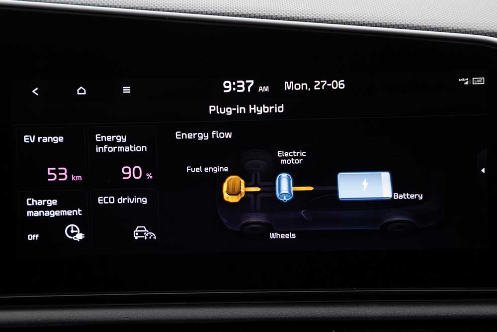 To αμέσως πιο ισχυρό, είναι το Niro Plug-in Hybrid (6DCT) με τη συνολική ισχύ 183 ίππων. Συνδυάζει τον κινητήρα 1.6 GDi των 105 ίππων και 147 Nm ροπής και το ηλεκτρικό μοτέρ των 84 PS και 203 Nm. Με την μπαταρία των 11,1 kWh μπορεί να διανύσει έως 84 χιλιόμετρα στην πόλη αμιγώς ηλεκτρικά (μεικτή αυτονομία 65 χλμ.), με μέση κατανάλωση 0,8 λτ./100 χλμ. και εκπομπές CO2 19 γρ./χλμ. Το 0-100 χλμ./ώρα ολοκληρώνεται σε 9,6 δλ. και η μέγιστη ταχύτητα αγγίζει τα 168 χλμ./ώρα. Στην πράξη και σε διαδρομή κοντά στα 65 χλμ. που διανύσαμε, είδαμε στο trip computer κατανάλωση μεταξύ 0,5-0,8 λτ./100 χλμ., αφού ο βενζινοκινητήρας χρειάστηκε να λειτουργήσει ελάχιστα.