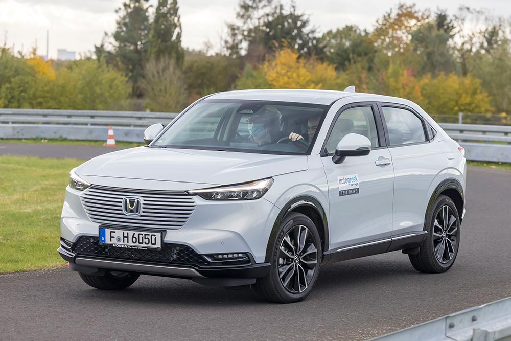 Η Honda εισήγαγε τη νέα υβριδική τεχνολογία e:HEV αρχικά στο CR-V, κατόπιν στο Jazz και τώρα στο νέο HR-V, με το νέο Civic Hatchback να ακολουθεί το 2022. Το e:HEV αποτελείται από δύο ηλεκτροκινητήρες (ο ένας είναι γεννήτρια) σε συνεργασία με ένα βενζινοκινητήρα 1.5 λτ. DOHC i-VTEC κύκλου Atkinson ισχύος 107 ίππων και 131 Nm ροπής, μία μπαταρία ιόντων λιθίου και ένα καινοτόμο e-CVT κιβώτιο μιας σχέσης μετάδοσης. Για την εγκατάστασή του στο HR-V, η απόδοση του e:HEV αυξήθηκε από 109 ίππους που είναι στο νέο Jazz, στους 131 ίππους και με ροπή 253 Nm. Το βάρους 1.380 κιλών HR-V επιταχύνει στο 0-100 χλμ./ώρα σε 10,6 δλ. και η μέγιστη ταχύτητα φτάνει τα 170 χλμ./ώρα. Οι εκπομπές CO2 ξεκινούν από 122 γρ./χλμ. και η κατανάλωση από 5,4 λτ./100 χλμ. (μεικτές συνθήκες) Εμείς είδαμε στο trip computer 5,7 λτ./100 χλμ. κατανάλωση, κινούμενοι σε εθνική οδό, επαρχιακές διαδρομές και αστικές συνθήκες.