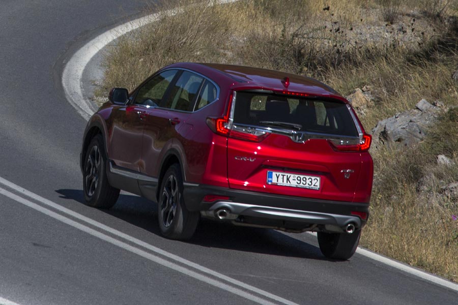 Όσον αφορά στην κατανάλωσή του, η εργοστασιακή είναι στα 8,7 λίτρα/100 χλμ. (σύμφωνα με το νέο κύκλο δοκιμών). Στην πραγματικότητα, εμείς είδαμε 9,2 λίτρα/100 χλμ. τιμή αρκετά κοντά στην ανακοινώσιμη. Εκτός δρόμου, το νέο Honda CR-V είναι ένας «οδοστρωτήρας». Τα ενεργά αμορτισέρ προσαρμόζονται κατάλληλα στις συνθήκες και αποσβένουν αποτελεσματικά όλες τις ανωμαλίες του εδάφους. Σίγουρα, το CR-V δεν είναι ένα αυτοκίνητο με το οποίο θα κάνεις ακραίο off roading, θα σε πάει όμως ξεκούραστα και άνετα σε βατό χωματόδρομο, χωρίς έντονο ανάγλυφο, ενώ η τετρακίνηση τουλάχιστον σε λασπωμένο τερέν εμπλέκεται γρήγορα και δεν αφήνει εκτεθειμένο τον οδηγό. Από την άλλη, στο επαρχιακό οδικό δίκτυο, δεν έχεις παρά να αφήσεις τον πρώτο ρόλο στο αυτόματο κιβώτιο και στο ροπάτο μοτέρ. Είναι εξάλλου αυτά που σε συνδυασμό με την άνετη ανάρτηση θα σε κάνουν να οδηγήσεις χαλαρά προς τον προορισμό σου χωρίς να αναζητήσεις τις έντονες συγκινήσεις πίσω από το τιμόνι, που δεν είναι εξάλλου και το ζητούμενο σε ένα τέτοιο αυτοκίνητο.