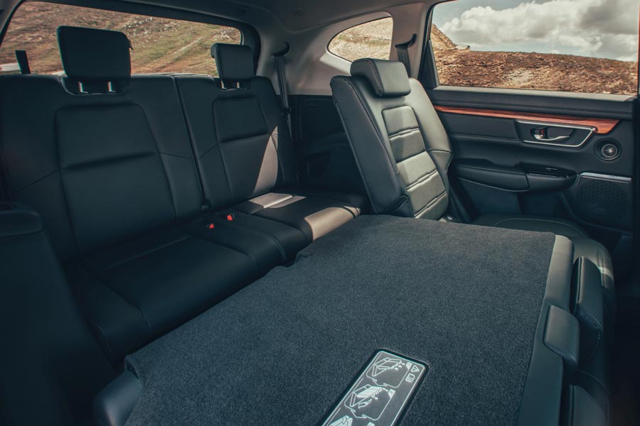Το εσωτερικό του νέου Honda CR-V είναι απίθανο, καθώς καταφέρνει να ικανοποιήσει πολλές και διαφορετικές ανάγκες. Και αυτό γιατί είναι ποιοτικό και προσεγμένο σε φινίρισμα και συναρμογή, ευρύχωρο, πρακτικό, για πρώτη φορά 7θέσιο σε κάποιες εκδόσεις και είναι γεμάτο τεχνολογία. Μόλις κάτσεις στην θέση του οδηγού και γυρίσεις τον διακόπτη, παρατηρείς πως ο πίνακας οργάνων είναι ψηφιακός (7 ιντσών), ενώ ακόμη μία ψηφιακή οθόνη, αφής αυτή την φορά 5 ή 7 ιντσών (αναλόγως έκδοσης), βρίσκεται στο κέντρο του ταμπλό και προβάλει όλες τις πληροφορίες του συστήματος πολυμέσων Driver Information Interface (DII). Σε κορυφαίο επίπεδο βρίσκονται και οι χώροι της καμπίνας του CR-V, ενώ για πρώτη φορά μπορεί κάποιος να πάρει το ιαπωνικό μοντέλο και με τρίτη σειρά καθισμάτων και 7θέσια διάταξη (2+3+2), με την δεύτερη σειρά να είναι συρόμενη κατά τον διαμήκη άξονα. Ο χώρος αποσκευών έχει μήκος 1.800 χλστ. Στην 5θέσια διάταξη η χωρητικότητά του είναι στα 561 λίτρα και φτάνει έως τα 1.756 λίτρα. Στην 7θέσια διάταξη η χωρητικότητά του είναι στα 150 λίτρα. Ανεξαρτήτως διαμόρφωσής του, το δάπεδό του παραμένει επίπεδο, ενώ έχει ρυθμιζόμενο ύψος.