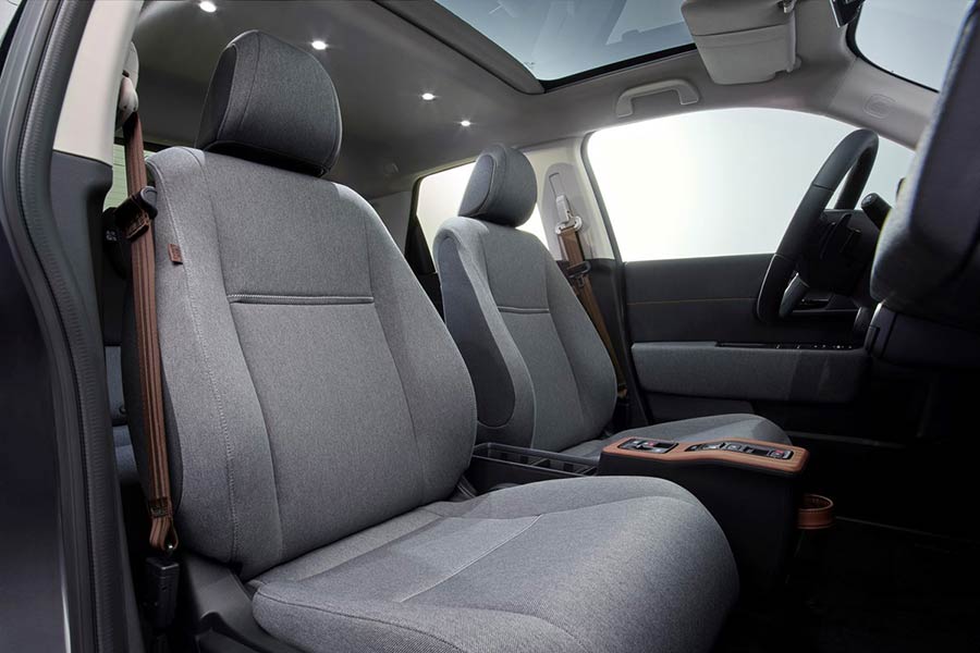 Σε επίπεδο ποιότητας, τα πλαστικά είναι σκληρά αλλά πολύ καλά συναρμολογημένα, ενώ η ευρεία χρήση μαλακού υφάσματος και τα ξύλινα διακοσμητικά παραπέμπουν σε παλαιότερα Honda, όμως το ταίριασμα με τις οθόνες είναι πολύ ισορροπημένο. Παρά τις κόμπακτ διαστάσεις του, στο εσωτερικό του Honda e θα μετακινηθούν με ικανοποιητικές ανέσεις στα αναπαυτικά καθίσματα μέχρι τέσσερα άτομα. Για τις αποσκευές όμως, ο χώρος είναι λίγος (171 λτ.), λόγω της ύπαρξης του ηλεκτροκινητήρα κάτω από το δάπεδο.