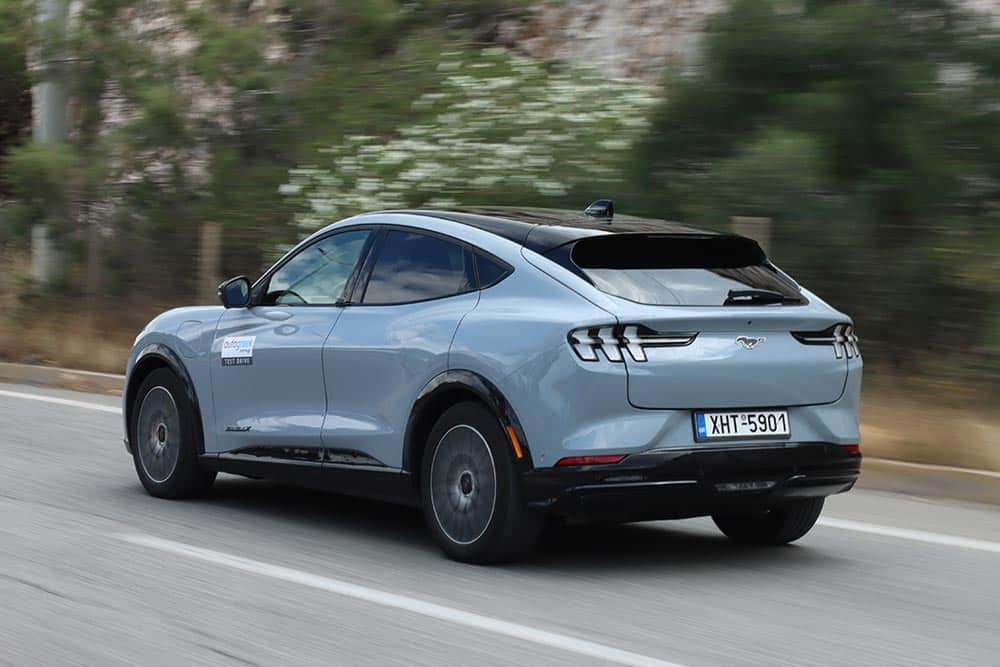 Καλά όλα τα παραπάνω, αλλά για Mustang μιλάμε. Έστω ηλεκτρική και SUV, αλλά με τέτοιο όνομα δεν γίνεται να μην είναι προτεραιότητα οι επιδόσεις. Τομέας όπου διαπρέπει η Mach-E, αξιοποιώντας στο έπακρο τους 294 ίππους και τα 525 Nm του ηλεκτροκινητήρα της έκδοσης που είχαμε στη διάθεσή μας. Η επιτάχυνση είναι κάτι παραπάνω από σεβαστή, εμφανίζοντας τα 100 χλμ./ώρα από το 0 στο ψηφιακό κοντέρ εντός 6,1 δλ., ενώ παράλληλα κάνει το βάρος των περίπου 2,2 τόνων να εξαφανίζεται στις ρεπρίζ. Η τελική ταχύτητα περιορίζεται ηλεκτρονικά στα 180 χλμ./ώρα, τιμή που υπενθυμίζει ότι η Mach-E είναι μεν Mustang, αλλά με περιβαλλοντική συνείδηση (και μπαταρία, που θέλει προστασία).