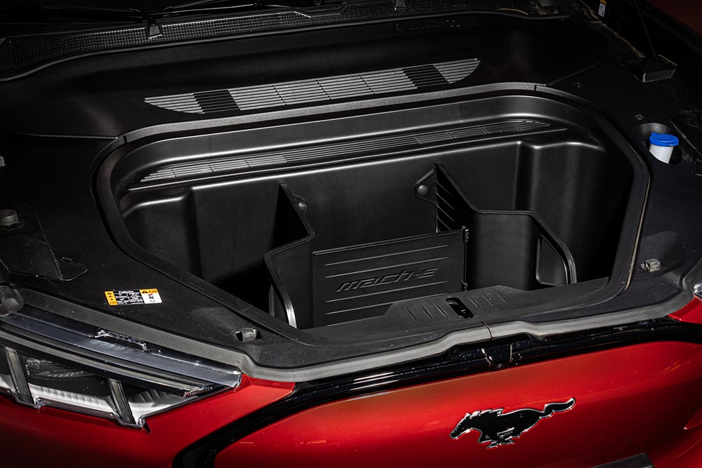 Από την ολιγόωρη επαφή, στο πλαίσιο της δημοσιογραφικής παρουσίασης, με τη Mustang Mach-E, είναι ξεκάθαρο πως οι επιβάτες σας θα βολευτούν χωρίς την παραμικρή παραχώρηση, απολαμβάνοντας τον κρυστάλλινο ήχο από το ηχοσύστημα της Bang&Olufsen των 560 Watt. Να σημειώσουμε πως το εν λόγω ηχοσύστημα έχει σχεδιαστεί αποκλειστικά και μόνο για την νέα Mustang Mach-E ενσωματώνοντας έξυπνα και διακριτικά τα ηχεία πάνω στην κεντρική κονσόλα προσφέροντας με αυτόν τον τρόπο κορυφαία ποιότητα ήχου. Για τις αποσκευές υπάρχουν διαθέσιμα 402 λίτρα, καθώς επίσης και 81 λίτρα διαθέσιμου χώρου κάτω από το εμπρόσθιο καπό (το Frunk όπως το ονομάζει η Ford, είναι εμπνευσμένο από το Megabox του Puma), που μπορεί να φιλοξενήσει ένα μέρος των αποσκευών σας! Ο χώρος αυτός είναι πλήρως αδιάβροχος, διαθέτοντας σύστημα αποστράγγισης!