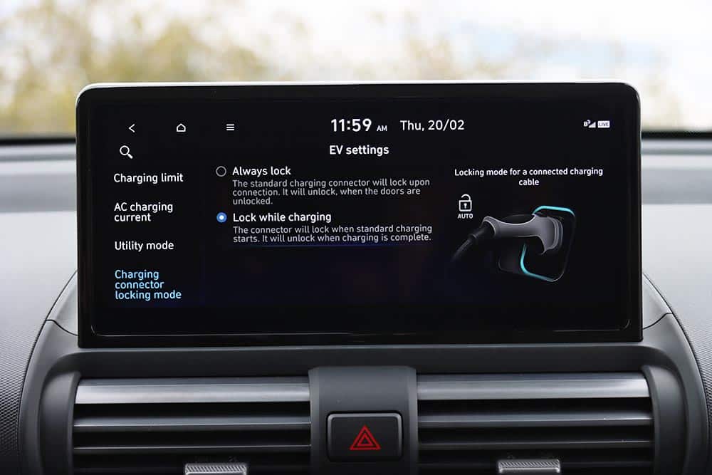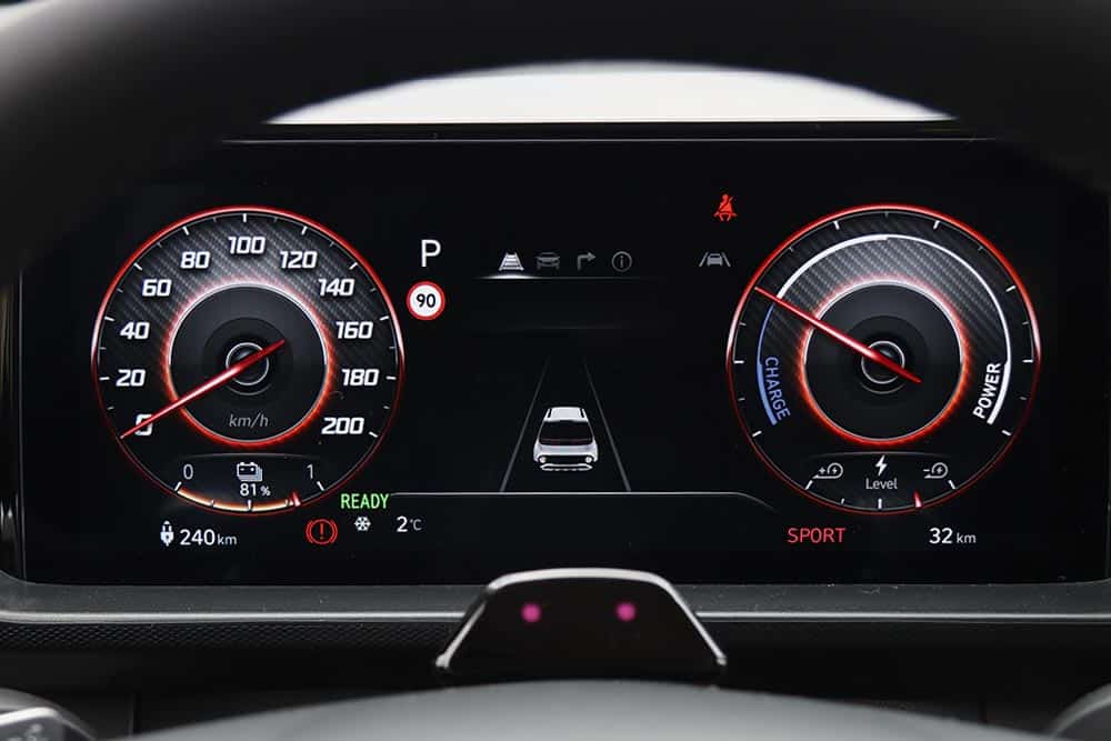 Το πιο δυνατό Inster που οδηγήσαμε με τους 115 ίππους και τη ροπή των 147 Nm (ίδια και στο 97 PS) εφοδιάζεται με μπαταρία 49 kWh. Η επιτάχυνση είναι γραμμική σε κάθε περίπτωση και η απόδοση υπεραρκετή για το αμάξωμα των 1,3 τόνων, με το ηλεκτρομοτέρ να ενισχύει την άνεση στην οδήγηση. Επίσης, υπάρχει το Drive Mode με τις επιλογές Eco, Normal και Sport για πιο ήπια ή αμεσότερη απόκριση στο γκάζι και παροχή ισχύος. Σύμφωνα με τη Hyundai η αυτονομία φτάνει έως τα 370 χλμ. σε μεικτές συνθήκες και έως τα 518 χλμ. σε αστικό κύκλο. Η φόρτιση διαρκεί 4 ώρες και 35 λεπτά σε AC Wallbox 11 kW (10-100%) ή 30 λεπτά σε DC >120 kW (10-80%). Επιταχύνει από στάση στα 100 χλμ./ώρα σε 10,6 δλ., η μέγιστη ταχύτητα σταμάτα στα 150 χλμ./ώρα και η μεικτή κατανάλωση είναι 14,9 kWh/100 χλμ. Προαιρετικά διατίθενται σύστημα Vehicle-to-Load (V2L) για φόρτιση εξωτερικών συσκευών και αντλία θερμότητας για καλύτερη απόδοση στα ψυχρά κλίματα.