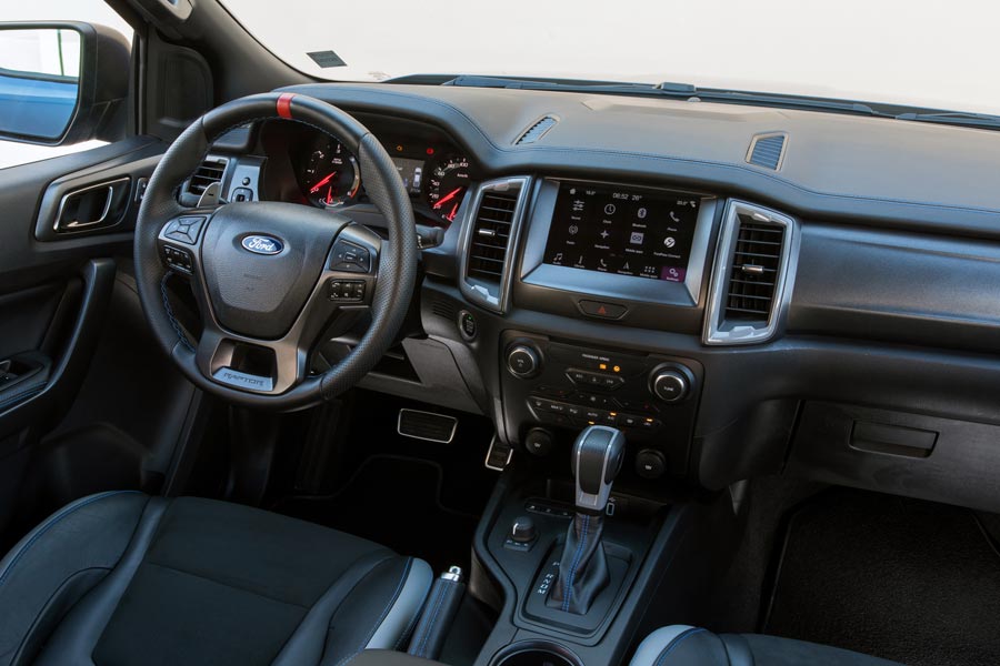Ο οδηγός του Ranger Raptor, ανάλογα με το που θα κινηθεί, έχει στη διάθεσή του να επιλέξει μεταξύ 6 προφίλ οδήγησης: Normal, Sport, Grass/Gravel/Snow, Mud/Sand, Rock καi Baja για γρήγορη οδήγηση εκτός δρόμου. Επιπλέον υπάρχουν οι επιλογές κίνησης 2H, 4H, 4L, κλείδωμα του πίσω διαφορικού και σύστημα ελέγχου κατάβασης.