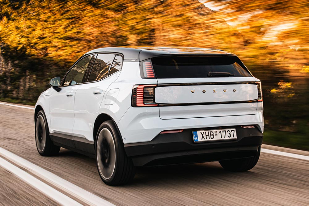 Το νέο Volvo EX30 καλύπτει ένα ευρύ κοινό με τους συνδυασμούς ηλεκτρικών συνόλων και μπαταριών. Το αρχικό μοντέλο φέρει έναν ηλεκτροκινητήρα στον πίσω άξονα, ισχύος 272 ίππων και 343 Nm ροπής. Το αμάξωμα των 1,8 τόνων χρειάζεται μόλις 5,7 δλ. για τα 0-100 χλμ./ώρα και η μέγιστη ταχύτητα περιορίζεται στα 180 χλμ./ώρα (όπως σε κάθε νέο Volvo). Η μικρότερη στάνταρ μπαταρία LFP των 51 kWh χρησιμοποιεί τεχνολογία φωσφορικού σιδήρου λιθίου, είναι περισσότερο αποδοτική από πλευράς κόστους και απαιτεί λιγότερους πόρους για την παραγωγή της. Σύμφωνα με τη Volvo η μέγιστη μεικτή αυτονομία φτάνει τα 344 χλμ. με κατανάλωση 16,7 kWh/100 χλμ. Φορτίζει από 0-100% σε 6 ώρες σε wallbox 11kW, ή σε 26 λεπτά σε DC 10-80%.