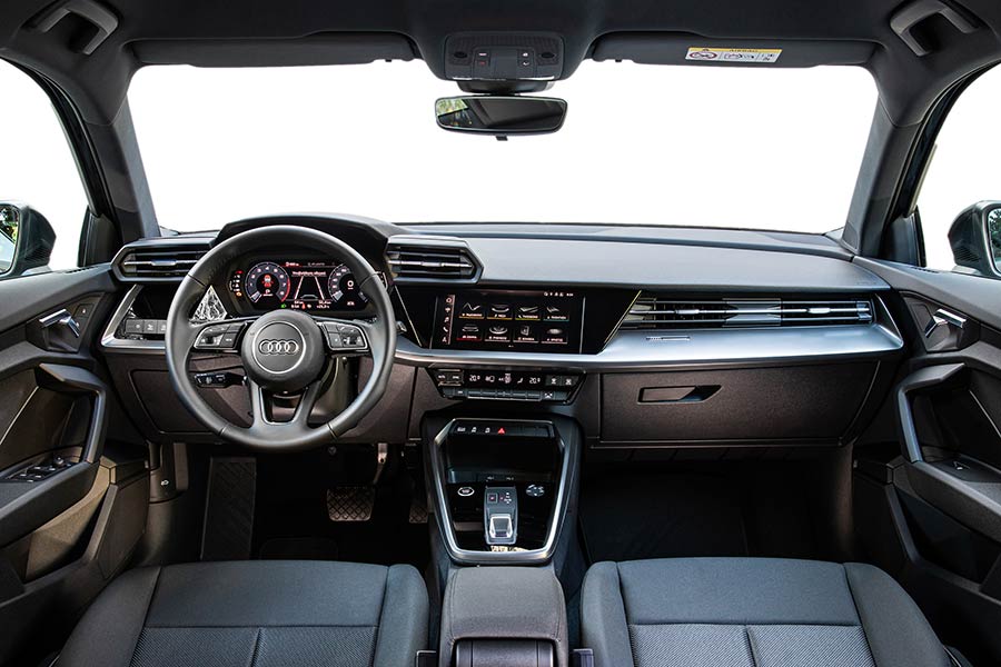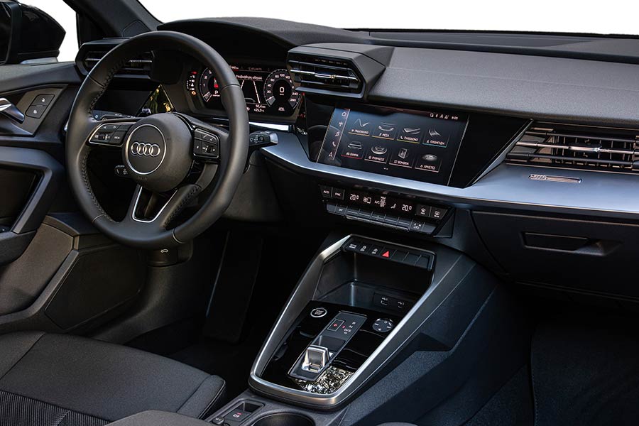 Εντυπωσιακή είναι η εικόνα και στο εσωτερικό του νέου Audi A3 Sportback, όπου συνδυάζει τα σπορτίφ χαρακτηριστικά με την πολυτέλεια σε πολύ σωστές αναλογίες και δίχως περιττά στοιχεία εντυπωσιασμού, που θα λειτουργούσαν εις βάρος της εργονομίας. Ο αιχμηρός σχεδιασμός, οι οριζόντιες γραμμές και οι επίπεδες επιφάνειες τονίζουν το πλάτος του. Επιπλέον, χρησιμοποιεί οικεία στοιχεία από τα μεγαλύτερα μοντέλα της μάρκας και είναι εξοπλισμένο με οθόνη αφής 10,1 ιντσών ως στάνταρ, καθώς και με ψηφιακό πίνακα οργάνων 10,25 ιντσών.