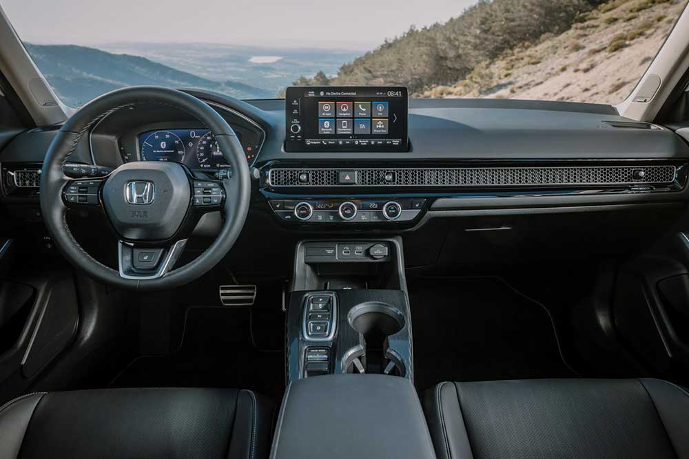 Εντελώς αλλαγμένο είναι και το εσωτερικό του νέου Civic, όπου υιοθετείται η ίδια απέριττη, σύγχρονη σχεδιαστική φιλοσοφία με το εξωτερικό. Οι ευθείες γραμμές, οι επίπεδες επιφάνειες με τις απαλές καμπύλες και το χαμηλό ταμπλό δημιουργούν μια ανάλαφρη ατμόσφαιρα, όπου λείπει κάθε τι περιττό. Το ίδιο ισχύει και για τον ψηφιακό πίνακα οργάνων των 10,2 ιντσών που χρησιμοποιείται για πρώτη φορά σε Civic (7 ιντσών στις βασικές εκδόσεις), όπως και για την κεντρική οθόνη του infotainment των 9 ιντσών. Ευχάριστη νότα αποτελεί και το οριζόντιο παραλληλόγραμμο τμήμα με το μοτίβο πλέγματος κυψελών, όπου ενσωματώνονται και οι αεραγωγοί, που επιτρέπουν μία ευρύτερη και λιγότερο ενοχλητική ροή αέρα σε όλη τη καμπίνα.