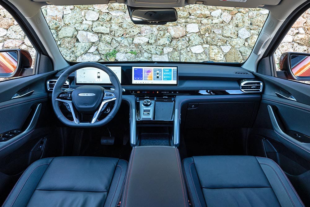 Μπαίνοντας στο εσωτερικό του T60 Max, η συνολική εικόνα που αποκομίζει κανείς είναι αυτή ενός σύγχρονου SUV με όλες τις ανέσεις και με προσεγμένη ποιότητα. Στο ταμπλό του και σε επιμέρους επιφάνειες έχει γίνει χρήση μαλακών υλικών, κάτι που δεν συναντάται σε άλλα δημοφιλή pick-up. Σε συνδυασμό με την πολύ γεροδεμένη συναρμογή, τις κόκκινες ραφές και τα ασημί-νίκελ διακοσμητικά, το T60 Max μόνο «αγροτικό» δεν θυμίζει. Τη σύγχρονη εικόνα του ενισχύουν ο πλήρως ψηφιακός πίνακας οργάνων 12,3 ιντσών και η κεντρική οθόνη infotainment 12,3 ιντσών που δημιουργούν ένα ενιαίο περιβάλλον προβολής, με καθαρή απεικόνιση και άμεση πρόσβαση στις λειτουργίες του οχήματος. Η συμβατότητα με Apple CarPlay και Android Auto επιτρέπει την απρόσκοπτη ενσωμάτωση των smartphone στην καθημερινή χρήση, ενώ η ασύρματη φόρτιση κινητού (50W) και οι τρεις θύρες USB καλύπτουν τις ανάγκες φόρτισης όλων των επιβατών. Στον εξοπλισμό ανήκουν μεταξύ άλλων θερμαινόμενα και ηλεκτρικά ρυθμιζόμενα καθίσματα έξι θέσεων για οδηγό και συνοδηγό, θερμαινόμενο δερμάτινο πολυλειτουργικό τιμόνι και αυτόματος κλιματισμός με πίσω έξοδο αέρα στο κεντρικό υποβραχιόνιο.