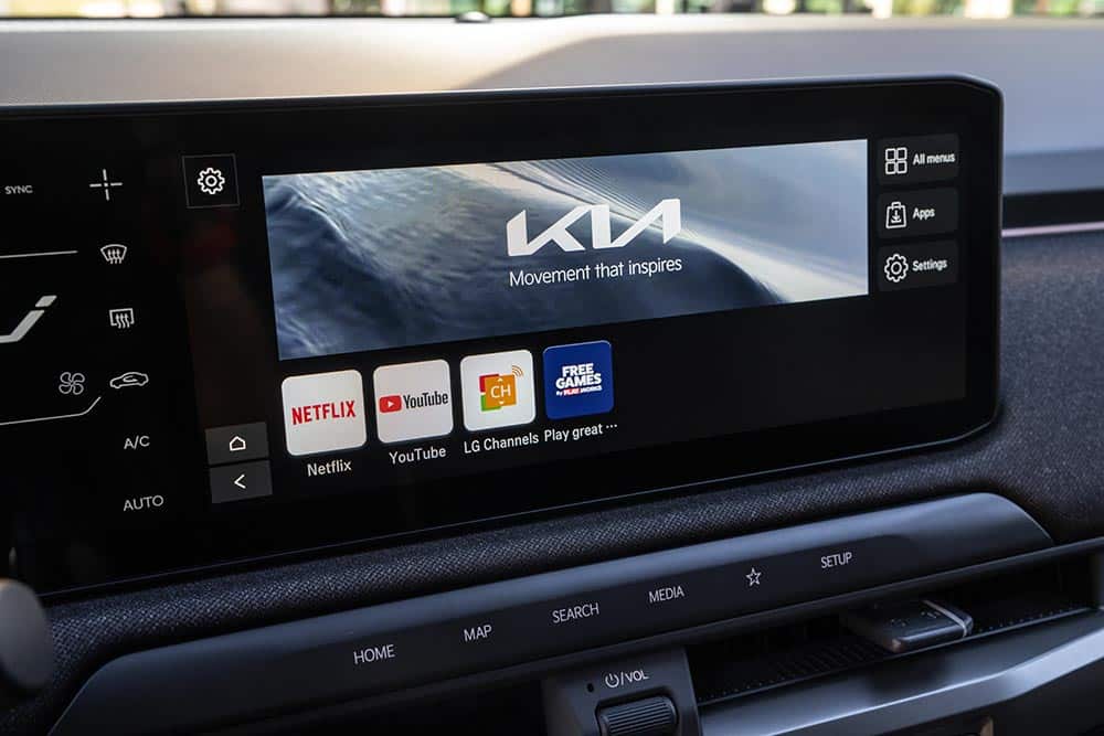 Ιδιαίτερα μοντέρνο παρουσιάζεται και το εσωτερικό του νέου Kia EV3, όπου έχει δοθεί έμφαση στη λειτουργικότητα και στους διαθέσιμους χώρους. Μια πανοραμική ενιαία οθόνη σχεδόν 30 ιντσών αποτελείται από τον πίνακα οργάνων 12,3 ιντσών, την οθόνη 5,0 ιντσών για το σύστημα κλιματισμού και την οθόνη 12,3 ιντσών για το infotainment. Ο οδηγός δεν μπερδεύεται αφού όλες οι πληροφορίες και λειτουργίες είναι σωστά τακτοποιημένες με σαφή γραφικά. Πρόσθετα, το Head-up Display των 12 ιντσών προβάλλει πληροφορίες στο παρμπρίζ για να ελαχιστοποιήσει την απόσπαση της προσοχής του οδηγού. Επίσης, το EV3 είναι το πρώτο ηλεκτρικό μοντέλο που διαθέτει την τεχνολογία AI Assistant της Kia, παρέχοντας νέους και καινοτόμους τρόπους αλληλεπίδρασης και ελέγχου των λειτουργιών του αυτοκινήτου τους, άμεσα και διαισθητικά. Το ταμπλό έχει «καθαρό» σχεδιασμό χωρίς ανώφελα στοιχεία εντυπωσιασμού, γεγονός που δημιουργεί ένα ακόμα πιο φιλικό περιβάλλον προς τους επιβάτες και τους κάνει να νιώθουν όμορφα. Η κομψή κεντρική κονσόλα ενσωματώνει ένα συρόμενο τραπεζάκι, το υποβραχιόνιο και αποθηκευτικό χώρο στο κάτω μέρος.