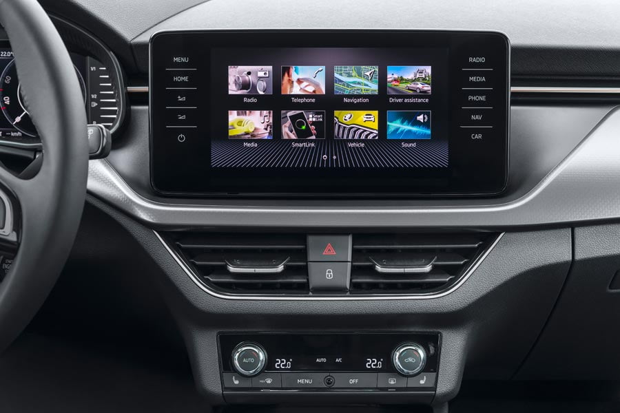Τα συστήματα Swing, Bolero και Amundsen ανήκουν στην τρίτη γενιά των συστημάτων infotainment του ομίλου και έχουν οθόνες από 6,5 έως 9,2 ίντσες. Παράλληλα, η οθόνη του προαιρετικού Ψηφιακού Πίνακα Οργάνων (Virtual Cockpit) των 10,25 ιντσών είναι μία από τις μεγαλύτερες στην κατηγορία. Πολυάριθμα είναι τα συστήματα υποβοήθησης και συνδεσιμότητας, υπάρχει ενσωματωμένη κάρτα eSIM, δυνατότητα απομακρυσμένης πρόσβασης μέσω της εφαρμογής Skoda Connect, αλλά και η ψηφιακή βοηθός Laura, μέσω του νέου προηγμένου συστήματος φωνητικού ελέγχου. Σημείο αναφοράς για την κατηγορία είναι ακόμα οι άφθονοι χώροι για τους πίσω επιβάτες, καθώς και το πορτμπαγκάζ των 400 λίτρων, το οποίο μπορεί να φτάσει έως και τα 1.395 λίτρα, αν αναδιπλωθούν οι ασύμμετρες πλάτες (60:40) του πίσω καθίσματος.