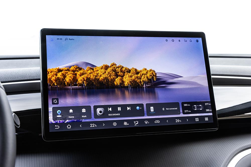 Αντίστοιχα κομψό παρουσιάζεται και το εσωτερικό του χωρίς να «προκαλεί» αισθητικά. Κυρίαρχα στοιχεία αποτελούν οι καμπύλες επιφάνειες και οι συμμετρικές αναλογίες στο ταμπλό, όπου στο κέντρο κυριαρχεί η οθόνη αφής υψηλής ανάλυσης και με σύγχρονα γραφικά των 12,8 ιντσών. Παράλληλα μπροστά από τον οδηγό ο ψηφιακός πίνακας οργάνων των 8,8 ιντσών παρέχει τις απαραίτητες πληροφορίες. Στη βάση της κεντρικής κονσόλας είναι τοποθετημένος ο λεβιές ταχυτήτων μαζί με φυσικά χειριστήρια για διάφορες λειτουργίες προς όφελος της εργονομίας. Από πλευράς ποιότητας κερδίζει τις εντυπώσεις με το πολύ στιβαρό «δέσιμο» των επιμέρους τμημάτων, ενώ η χρήση μαλακών υλικών ανεβάζει το συνολικό αποτέλεσμα. Στα θετικά γνωρίσματα της καμπίνας ανήκει και η ευρυχωρία που απολαμβάνουν όλοι οι επιβάτες, με τους πίσω να εξυπηρετούνται περεταίρω από το εντελώς επίπεδο δάπεδο. Αρκούντως ικανοποιητική είναι η χωρητικότητα των 463 λτ. του πορτ μπαγκάζ (έως 1.410 λτ. με τα πίσω καθίσματα αναδιπλωμένα), ωστόσο θα μπορούσε και καλύτερα δεδομένου ότι είναι ένα SUV με 4,74 μ. μήκος.