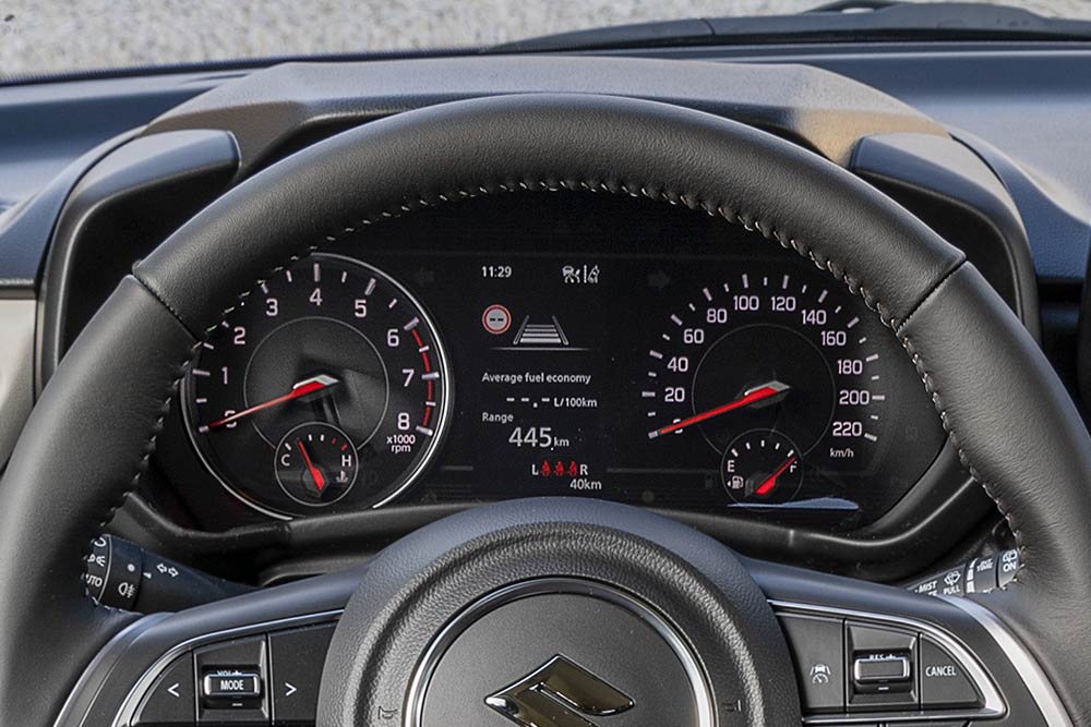 Αντίθετα με την τάση της εποχής των πλήρως ψηφιακών καντράν, η Suzuki προτίμησε να κρατήσει τα αναλογικά όργανα στον αντίστοιχο πίνακα, με την οθόνη πολλαπλών πληροφοριών στο κέντρο. Ο οδηγός του νέου Swift θα βρει αμέσως την κατάλληλη θέση και θα νιώσει ότι γίνεται ένα με το αυτοκίνητο, γεγονός που τονίζει τον συνολικά ευχάριστο χαρακτήρα του ιαπωνικού supermini. Από πλευράς χώρων προσφέρει πολύ αέρα για τα κεφάλια και αρκετό για τα πόδια των επιβατών με ύψος μέχρι περίπου τα 1,8 μ. Το πορτ μπαγκάζ παρέμεινε μικρό στα 265 λίτρα, ωστόσο το ύψος του ανοίγματός του μεγάλωσε.
