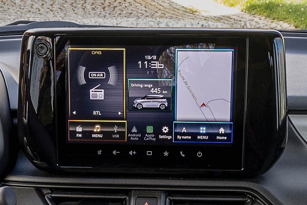 Εντελώς νέο είναι και το εσωτερικό του 4ης γενιάς Swift, με το πιο νεανικό στιλ και ευχάριστο διάκοσμο, τον οποίο αναβαθμίζει η διχρωμία (μαύρου – ανοιχτού γκρι) στο ταμπλό και στα πάνελ των εμπρός θυρών. Σε συνδυασμό με τις λεπτομέρειες σε σατινέ επιμετάλλωση και σκούρο ασημί χρώμα, ενισχύεται και το σπορτίφ προφίλ. Από πλευράς κατασκευής, η Suzuki έχει κάνει ευρεία χρήστη σκληρών πλαστικών με γεροδεμένη συναρμογή και καλύτερη υφή – όψη από του παλαιότερου μοντέλου. Στο κέντρο του ταμπλό κυριαρχεί η νέα στάνταρ οθόνη των 9 ιντσών του Infotainment, με navigation, συμβατότητα με CarPlay και Android Auto μέσω WiFi και USB, δυνατότητα αναγνώρισης φωνής, αναπαραγωγή μουσικής μέσω Bluetooth και πληροφορίες σχετικά με την κατάσταση του οχήματος.