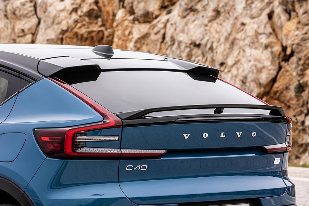 Το C40 Recharge βασίζεται στα δομικά στοιχεία του XC40 Recharge με το οποίο μοιάζει κυρίως στο ανανεωμένο εμπρός άκρο. Όμως από εκεί και πίσω διαφέρει σημαντικά και ειδικά στο τελείωμα του πίσω μέρους του. Μπροστά κυριαρχεί το χαρακτηριστικό «Σφυρί του Θωρ» στην κλειστού τύπου μάσκα, μαζί με τα νέας τεχνολογίας pixel LED φωτιστικά σώματα και το μυώδες καπό. Η γραμμή της οροφής έχει έντονη κλίση από το εμπρός παρμπρίζ και καταλήγει σε ένα έντονα σφηνοειδές, τύπου κουπέ πίσω άκρο. Εκεί τα κάθετα φώτα έχουν τμηματική διάταξη και αποτελούν μια σύγχρονη εκδοχή του κλασικού σχεδίου της Volvo. Πρόσθετα, οι ζάντες αλουμινίου των 20 ιντσών ενισχύουν την σπορτίφ εμφάνισή του, όπως και η διπλή πίσω αεροτομή, που είναι ειδικά σχεδιασμένη για να αυξάνει και την αυτονομία. Από πλευράς διαστάσεων, το C40 Recharge έχει μήκος 4.440 χλστ., πλάτος 1.873 χλστ., ύψος 1.591 χλστ. (1.647 χλστ. το XC40) και μεταξόνιο 2.702 χλστ.