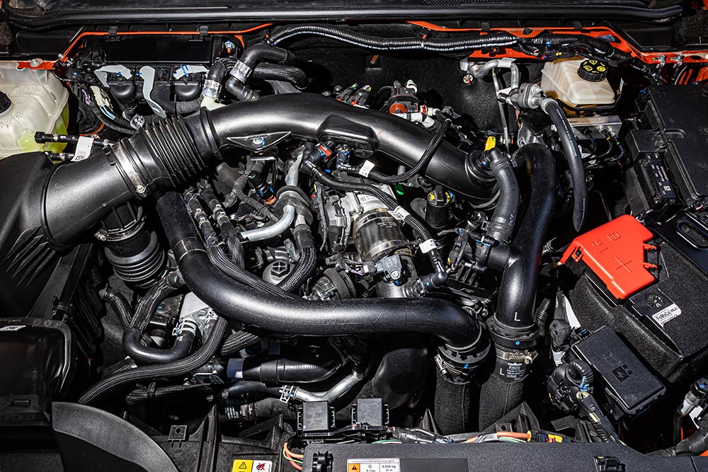 Τα μηχανικά σύνολα που συνοδεύουν τον «Ράπτορα» είναι το 2.0 λτ. EcoBlue Bi-turbo των 210 ίππων και 500 Nm ροπής και ο βενζίνης 3.0 λτ. V6 EcoBoost Twin Turbo των 292 ίππων και 491 Nm ροπής, με αυτόματο κιβώτιο 10 ταχυτήτων αμφότερα. Στα πλαίσια της παρουσίασης που έγινε στην Αττική, τα αυτοκίνητα που ήταν διαθέσιμα εφοδιάζονταν με τον πανίσχυρο, αλλά -αναμενόμενα- λαίμαργο σε κατανάλωση βενζινοκινητήρα. Το θηριώδες pickup επιταχύνει σαν σπορ αυτοκίνητο (0-100 χλμ./ώρα σε 7,9 δευτερόλεπτα) και ακούγεται σαν σπορ μοντέλο μέσω της σχετικής επιλογής που υπάρχει πατώντας το διακόπτη (στο τιμόνι) Exhaust Mode (Quiet, Normal, Sport και Βaja). H Ford ανακοινώνει μεικτή κατανάλωση 13,8 λτ./100 χλμ. (στην πράξη to trip computer δείχνει και διπλό νούμερο), με εκπομπές CO2 315 γρ./χλμ. Άλλωστε ένα τέτοιο «αγροτικό» δεν απευθύνεται σε… τσιγκούνηδες, αφού στοιχίζει από 72.336 ευρώ (54.800 ευρώ χωρίς φόρους), ενώ μικρή είναι η διαφορά από το προφανώς πιο οικονομικό σε κατανάλωση ντίζελ των 68.970 ευρώ (52.250 ευρώ χωρίς φόρους).