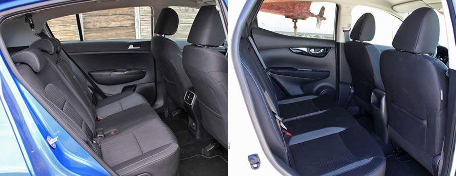 Σε επίπεδο διαθέσιμων χώρων, το μεγαλύτερο σε διαστάσεις Sportage, έχει το πάνω χέρι. Όχι ότι το Qashqai δεν είναι ευρύχωρο, αλλά το Kia είναι πιο άνετο και αυτό φαίνεται αμέσως, τόσο στο εμπρός, όσο και στο πίσω μέρος της καμπίνας. Εκεί 5 επιβάτες, ακόμα και με ύψος περί τα 1,90 μ., δεν θα δυσκολευτούν να βρουν τη βολή τους στα καθίσματα του Sportage. Για τις αποσκευές το πορτμπαγκάζ προσφέρει 467 λίτρα, ενώ πολύ κοντά είναι το Qashqai με 430 λίτρα.