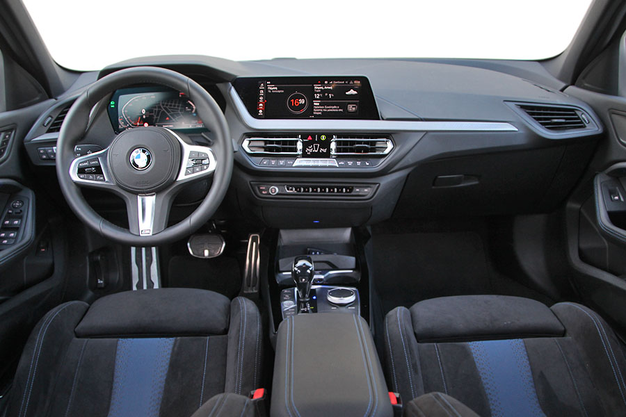 Περνώντας στο εσωτερικό των δύο αυτοκινήτων, ο παρατηρητής έρχεται αντιμέτωπος με δύο διαφορετικούς κόσμους. Το ταμπλό της A-Class θα εντυπωσιάσει πιο πολύ με τις δύο εξτρά οθόνες των 10,25 ιντσών έκαστη (στάνταρ είναι δύο οθόνες 7 ιντσών), οι οποίες δημιουργούν μια λεπτή ενιαία οθόνη. Αντίστοιχα και στην Σειρά 1 διατίθενται προαιρετικά οθόνες 10,25 ιντσών για τον πίνακα οργάνων και το σύστημα πολυμέσων (στάνταρ 8,8 ιντσών). Κοινό στοιχείο και των δύο αυτοκινήτων είναι οι έξυπνες φωνητικές εντολές που ενεργοποιούνται είτε λέγοντας «Hey BMW» ή «Hey Mercedes» και αντίστοιχα ελέγχονται πολλές λειτουργίες, χωρίς ο οδηγός να ψάχνει τα χειριστήρια. Αυτά είναι ούτως ή άλλως λίγα, ενώ ανάμεσα από τα εμπρός καθίσματα υπάρχει το πιο πρακτικό iDrive Controller της BMW με το περιστροφικό χειριστήριο, έναντι του όχι ιδιαίτερα εύχρηστου touchpad της Mercedes. Η θέση οδήγησης είναι πολύ καλή σε κάθε περίπτωση, ωστόσο η δυνατότητα πιο χαμηλής ρύθμισης της θέσης του καθίσματος του οδηγού στην Σειρά 1 θα βολέψει καλύτερα.