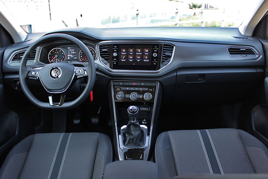 Πιο συμβατικό σχεδιασμό έχει το ταμπλό του T-Roc, ωστόσο είναι σύγχρονο και προσφέρει καλύτερη εργονομία, αφού υπάρχουν διακόπτες για διάφορες λειτουργίες του αυτοκινήτου (π.χ. κλιματισμός). Ποιοτικά χάνει πόντους από την ευρεία χρήση σκληρών πλαστικών, αλλά διαθέτουν πολύ καλή συναρμογή, με το τελικό φινίρισμα να είναι υπεράνω κριτικής.