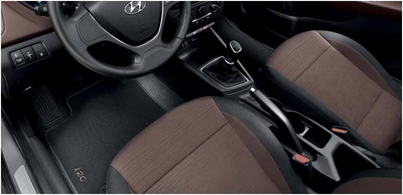 Πατάκια υφασμάτινα, βελούδινα. Όμορφα αλλά και ανθεκτικά, από υψηλής ποιότητας βελούδο, φτιαγμένα στα μέτρα του i20, με το σήμα στα μπροστινά. Έχουν οπές και αντιολισθητική βάση για να γαντζώνουν σταθερά στο δάπεδο.