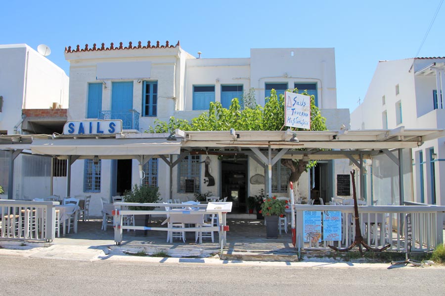 Απολαύστε σχεδόν μπροστά στη θάλασσα το γεύμα σας με τοπικό κρασί ή τσίπουρο, πάντα στις καλύτερες τιμές και με άριστη ποιότητα. Όσοι αγαπούν το φρέσκο ψάρι, θα το βρουν στην ψαροταβέρνα Sails, στο Γαύριο.