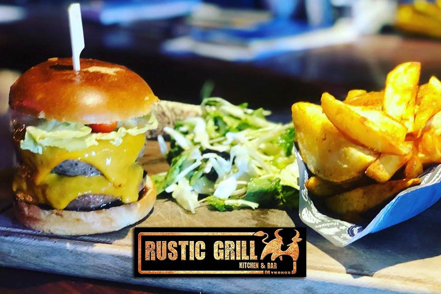 Το Rustic Grill Restaurant και Bar σερβίρει ένα λαχταριστό μενού που συνδυάζει αμερικανικές και μεσογειακές κουζίνες χρησιμοποιώντας μόνο φρέσκα υλικά της Μυκόνου για να δημιουργήσετε μια πραγματικά μοναδική εμπειρία φαγητού.