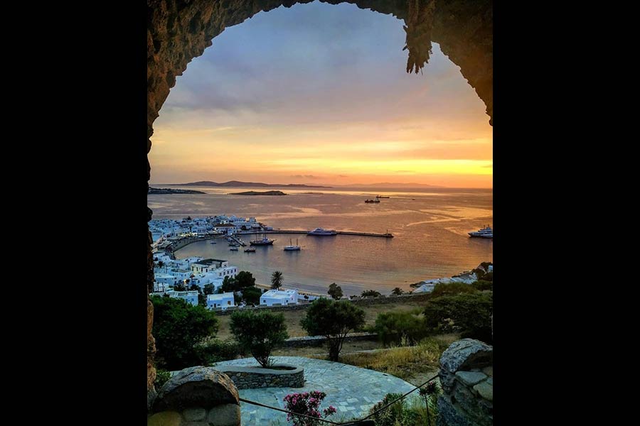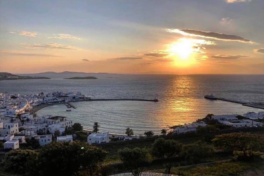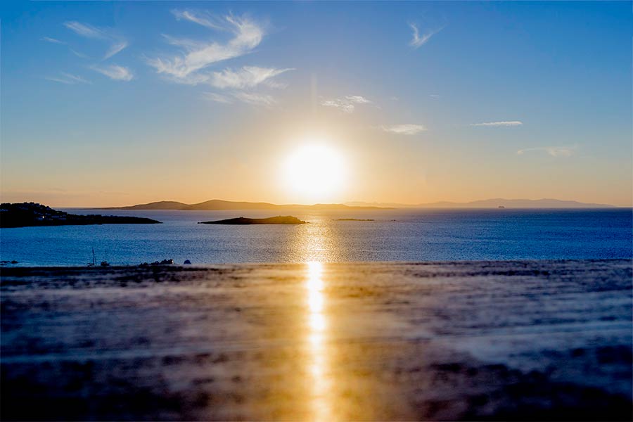 Mykonos 180⁰ Sunset Bar views to be the best on the whole island. 180⁰ Sunset Bar offers such majestic views that it feels like watching a painting made with love by God Almighty. Imagine the wind blowing, touching your face gently while you watch the endless sapphire blue waters and the golden sunset.