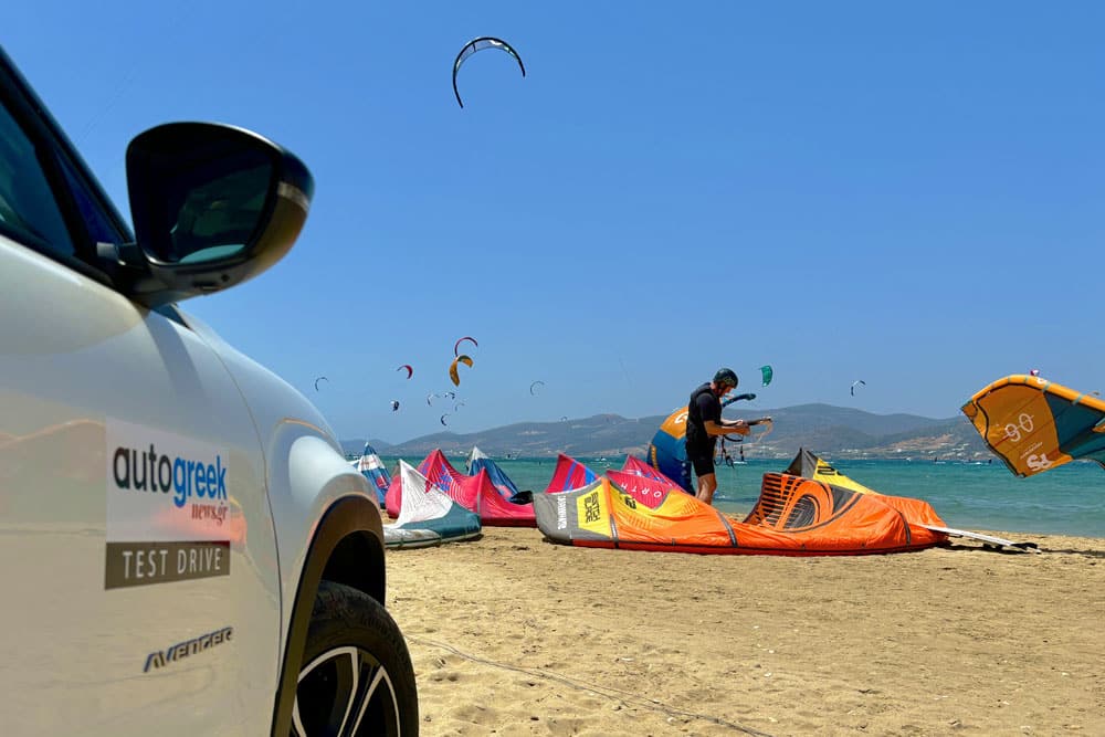 Μιλώντας για το νησί της Πάρου το πρώτο που έρχεται στο μυαλό στους μυημένους με τα «αέρινα» σπορ είναι η περιοχή της Πούντας όπου λειτουργούν κέντρα για kitesurf, θαλάσσια σπορ και παιχνίδια στην άφθονη άμμο. Σαν δραστήρια «παιδιά» λοιπόν και εμείς, δεν μπορούσαμε να μην πούμε στον πειρασμό και να απολαύσουμε το Jeep Avenger στην απέραντη χρυσαφένια παραλία όπου η παχιά άμμος δεν αποτέλεσε κανένα εμπόδιο. Με τα αποτελεσματικά προγράμματα Sand και Mud κινηθήκαμε με άνεση παρά το γεγονός ότι η κίνηση είναι μόνο μπροστά. Εξάλλου τα εν λόγω drive modes δεν αφήνουν τους τροχούς να σπινάρουν άσκοπα, αφού μεταφέρεται η δύναμη στον τροχό με την καλύτερη πρόσφυση. Μετά από αυτό, αναμένουμε με ακόμα μεγαλύτερη ανυπομονησία το επερχόμενο τετρακίνητο μοντέλο 4xe, για να γίνουμε ακόμα πιο τολμηροί.