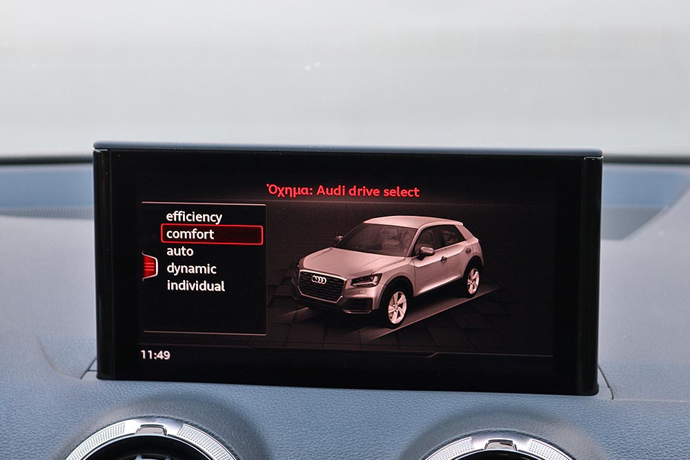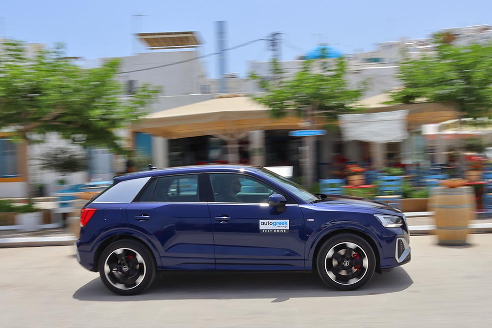 Τα ευχάριστα συνεχίζονται μόλις κάτσεις στη θέση του οδηγού. Το κάθισμά του ρυθμίζεται ποικιλοτρόπως για να βολευτεί κάθε σωματότυπος, ενώ η παχιά στεφάνη του σπορ τιμονιού σε προκαλεί να την πιάσεις στα χέρια σου και να στρίψεις σε κάθε είδους διαδρομή. Όπερ κι εγένετο και που μας έχανες που μας έβρισκες πίσω από το τιμόνι του Q2 να εξερευνούμε κάθε τετραγωνικό εκατοστό του νησιού. Βέβαια για να είμαστε ειλικρινείς σημαντικό ρόλο έπαιξε και το S tronic κιβώτιο 7 σχέσεων, το οποίο εξασφαλίζει βελούδινες αλλαγές και κρατάει ξεκούραστο το αριστερό πόδι του οδηγού. Κάτι εξαιρετικά χρήσιμο όταν η κίνηση στο λιμάνι της Νάουσας αυξανόταν, ειδικά στις βραδινές μας αναζητήσεις!