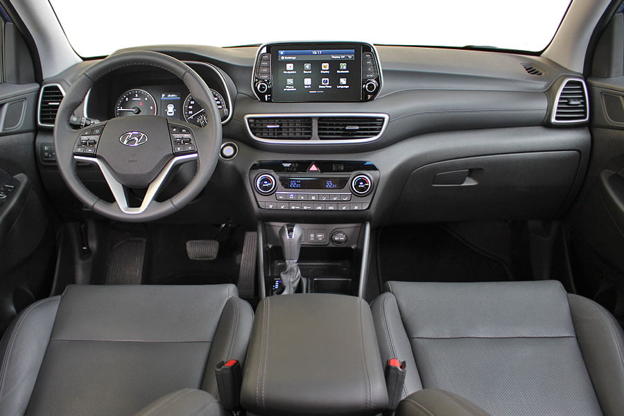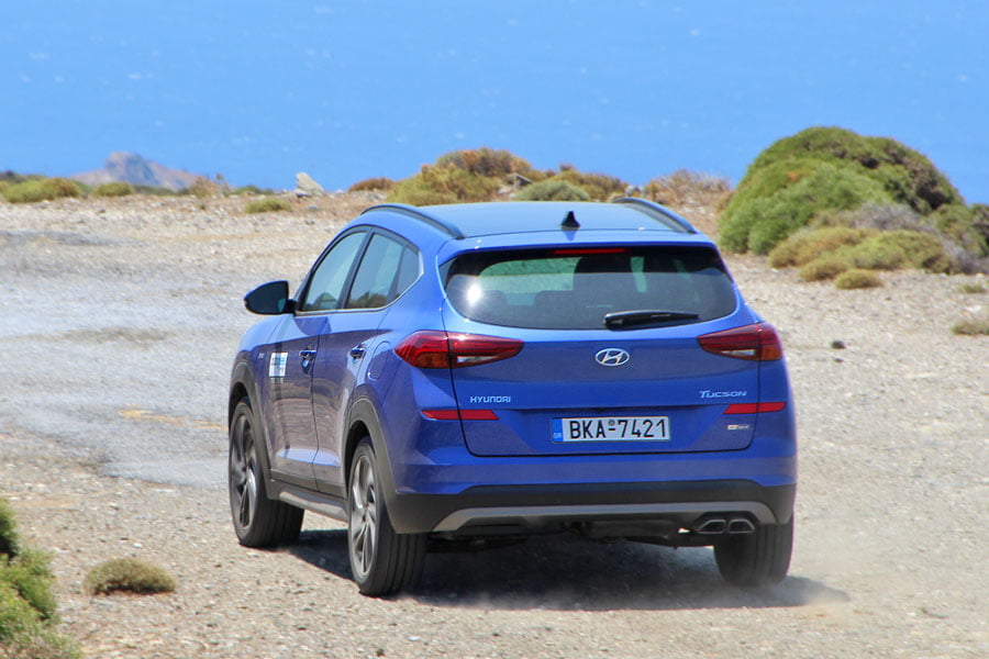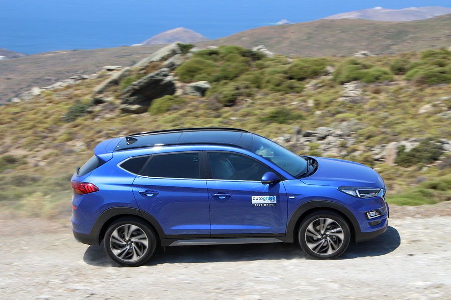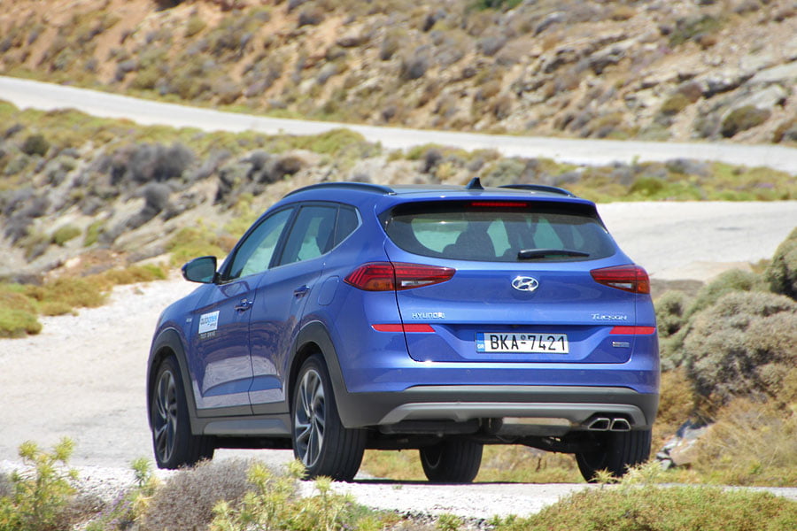 Εμφανισιακά το υβριδικό Tucson μαγνητίζει τα βλέμματα, χάρις στη χρωμιωμένη μάσκα, το μπλε χρώμα που του ταιριάζει πάρα πολύ, τις 19άρες ζάντες και την γενικότερα αθλητική και με τόνους πολυτελείας εμφάνισή του. Από μέσα σε κερδίζει η ποιότητα κατασκευής και η προσεγμένη εργονομία, η οποία συνδυάζεται με πολύ καλούς χώρους για επιβάτες και αποσκευές, πρακτικότητα και με ένα μεγάλο πορτ μπαγκάζ 459 λτ. Ξεχωριστό στοιχείο στο αυτοκίνητο της δοκιμής η πανοραμική ανοιγόμενη ηλιοροφή, η οποία ήταν ό,τι πρέπει για τον ελληνικό ήλιο, που φρόντιζε να «χρυσίσει» την αμμουδιά της Άνδρου.