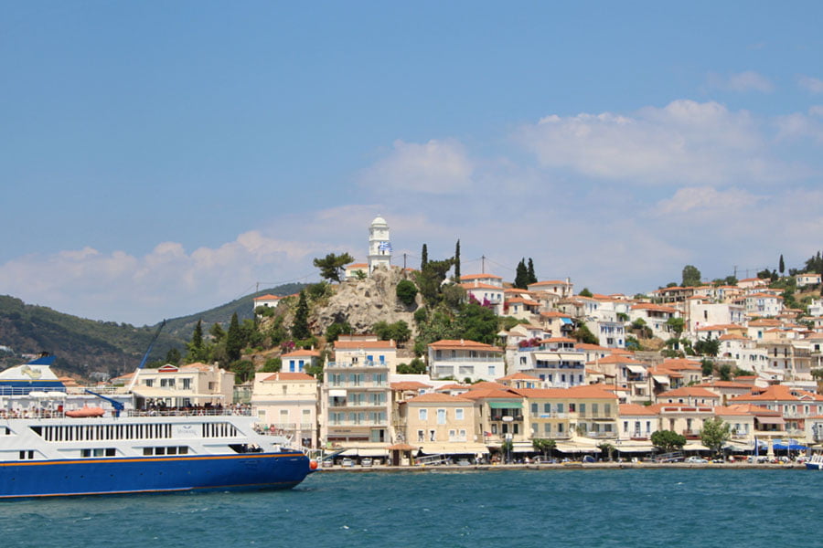 Η μετάβαση, τώρα, απαιτεί -αναμενόμενα- συνδυασμό οδήγησης και μεταφοράς με ferry. Το αυτοκίνητο θα μας πάει μέχρι τον Γαλατά, μετά από 2 ώρες και 20 λεπτά από την Αθήνα, σε απόσταση 174 χιλιομέτρων και αφού καταβάλλουμε 3,9 ευρώ στα διόδια. Εκεί υπάρχουν 2 επιλογές: είτε αφήνετε το αυτοκίνητο σε υπαίθριο δημοτικό πάρκινγκ και περνάτε στον Πόρτο με βάρκα (1 ευρώ ανά άτομο το κόστος), ή το παίρνετε μαζί με το ferry, πληρώνοντας άλλα 5 ευρώ.