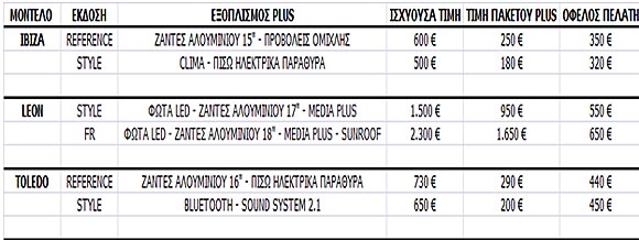 Η διάθεση των εκδόσεων SEAT «Plus» ενισχύει την ανταγωνιστικότητα της πρότασης της μάρκας στην αγορά και αποτελεί μια ιδιαίτερα ελκυστική πρόταση με οικονομικά πλεονεκτήματα για τον υποψήφιο πελάτη, ο οποίος πλέον έχει στην διάθεσή του εκδόσεις με υπερπλήρη βασικό εξοπλισμό και πάντα με το υψηλό value for money της SEAT.