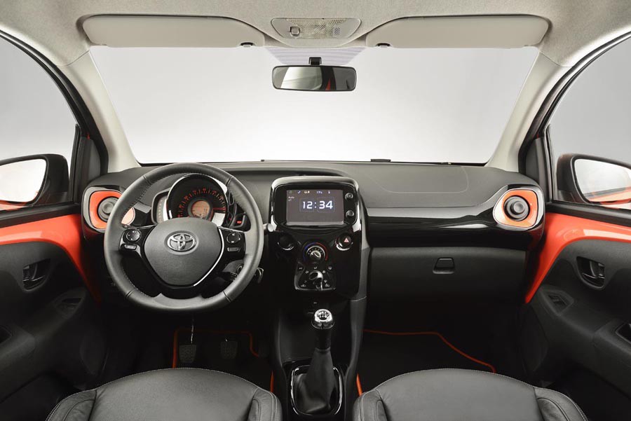 Πλήρως ανασχεδιασμένο είναι και το εσωτερικό του νέου μίνι Toyota, ωστόσο από το προγενέστερο Aygo διατηρήθηκαν κάποια χαρακτηριστικά, όπως οι γυμνές μεταλλικές επιφάνειες στο χρώμα του αμαξώματος και τα πίσω παράθυρα στα 5θυρα μοντέλα που ανοίγουν μόνο προς τα έξω. Η Toyota αναφέρει πως έχουν μεγαλώσει ελαφρώς οι χώροι τόσο για τους επιβάτες όσο και για τις αποσκευές κατά 29 λίτρα, δηλαδή στα 168 λίτρα, τα οποία και πάλι είναι λιγότερα έναντι του ανταγωνισμού.