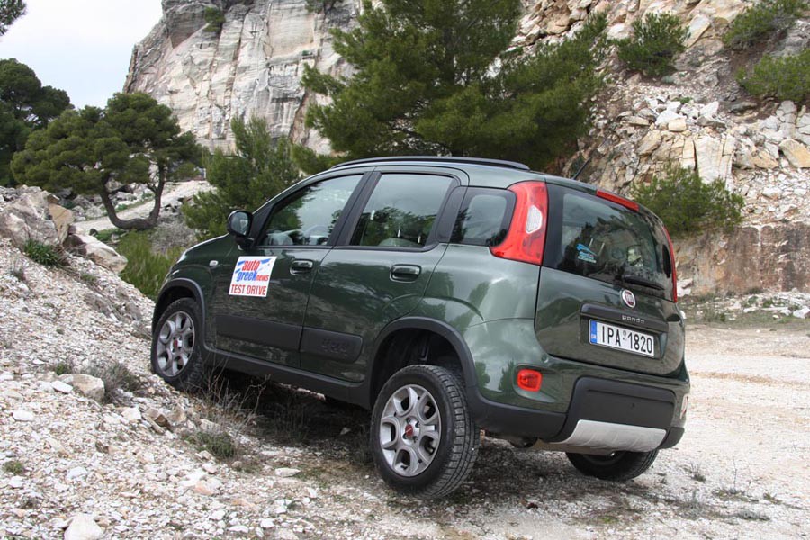 Το νέο μόνιμα 4κίνητο Panda εφοδιάζεται με δύο διαφορικά και ηλεκτρονικά ελεγχόμενη σύμπλεξη η οποία κατανέμει την ροπή ανάλογα με τις συνθήκες πρόσφυσης (Torque on demand), ενώ μέσω του μπουτόν ELD στην κεντρική κονσόλα, ο οδηγός μπορεί να επιλέξει την λειτουργία του μπλοκέ διαφορικού σε ταχύτητες μέχρι 50 χλμ./ώρα. Στην πράξη η τετρακίνηση λειτουργεί άμεσα και αποτελεσματικά προσφέροντας έξτρα πρόσφυση στην άσφαλτο, με αποτέλεσμα το μίνι Fiat να παραμένει πεισματικά στην πορεία του ακόμα και σε πιεσμένους ρυθμούς στις στροφές. Αντίστοιχα και σε χωμάτινους δρόμους το Panda 4×4 με τις compact εξωτερικές διαστάσεις, το χαμηλό βάρος του αμαξώματος των 1.115 κιλών και τις μεγάλες γωνίες εισόδου (21 μοίρες), ράμπας (20 μοίρες) και εξόδου (36 μοίρες), καθώς και τα 160 χλστ. από το έδαφος τα καταφέρνει περίφημα. Σύμμαχοί του είναι και τα ελαστικά M&S (λάσπη & χιόνι) διαστάσεων 175/65 R15. Η ανάρτηση από την πλευρά της με τον ημιάκαμπτο άξονα πίσω (πολλαπλών συνδέσμων στο προγενέστερο Panda 4×4) είναι σωστά ρυθμισμένη έτσι ώστε να απορροφά τις διάφορες ανωμαλίες των δρόμων και την «κροκάλα» εκτός δρόμου, χωρίς να μεταφέρονται στο εσωτερικό έντονοι και κουραστικοί κραδασμοί. Συνολικά το Panda 4×4 είναι πολύ ευχάριστο στην οδήγηση, άνετο, με απρόσκοπτη περιμετρική ορατότητα και βολική ψηλή θέση οδήγησης.