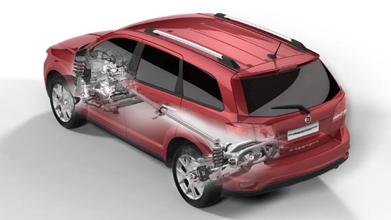 Στον τομέα της ενεργητικής ασφάλειας συμβάλει (εκτός από τα ηλεκτρονικά συστήματα ευστάθειας) και το σύστημα ενεργής τετρακίνησης, που κατανέμει αντίστοιχα τη ροπή στους δύο άξονες (μέχρι 50% στον πίσω άξονα) ανάλογα τις συνθήκες οδήγησης και πρόσφυσης. Φυσικά δεν προορίζεται για απαιτητικές εκτός δρόμου συνθήκες, αφού τα όρια τίθενται και από τις 19άρες ζάντες αλουμινίου με τα ασφάλτινα ελαστικά 225/55.