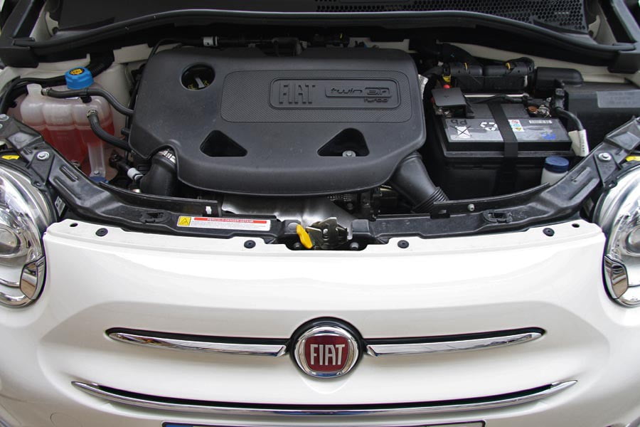 Ο 2κύλινδρος κινητήρας με απόδοση 105 ίππων προσφέρει πολύ καλές επιδόσεις στο μίνι Fiat (0-100 χλμ./ώρα σε 10 δευτερόλεπτα), και φτάνει σε ταχύτητες που σε κάνουν να αναρωτιέσαι αν είναι μόλις 875 κ.εκ. Ωστόσο χαρακτηριστικό του γνώρισμα είναι το «κροτάλισμα» και οι κραδασμοί που γίνονται αισθητοί στο ρελαντί και στις χαμηλές κυρίως στροφές, θυμίζοντας περισσότερο ντίζελ παρά βενζίνης. Σε πιο γρήγορους ρυθμούς δεν ενοχλεί και γενικότερα έχει βελτιωθεί σε σχέση με το προ ανανέωσης 500 0.9 TwinAir 85hp που είχαμε δοκιμάσει παλαιότερα. Στην λειτουργία ECO παρουσιάζεται σχετικά ράθυμος και με όχι ιδιαίτερα καλή αμεσότητα στο πάτημα του γκαζιού. Όμως με το πάτημα του μπουτόν Sport, το μικρό turbo μοτέρ δείχνει την ισχύ και ροπή του (145 Nm στις 2.000 σ.α.λ.), μεταμορφώνοντας το αυτοκίνητο και κάνοντάς το αισθητά πιο ενδιαφέρον οδηγικά, σε συνδυασμό και με το τιμόνι που σφίγγει. Το 6τάχυτο κιβώτιο με την βολική θέση του επιλογέα δεν έχει και τόσο καλή αίσθηση και η κλιμάκωσή του είναι σχετικά πυκνή. Η κατανάλωση κυμάνθηκε κατά τη διάρκεια της δοκιμής στα 6,8 λτ./100 χλμ., έναντι 4,2 λτ./100 χλμ. που ανακοινώνει η Fiat.